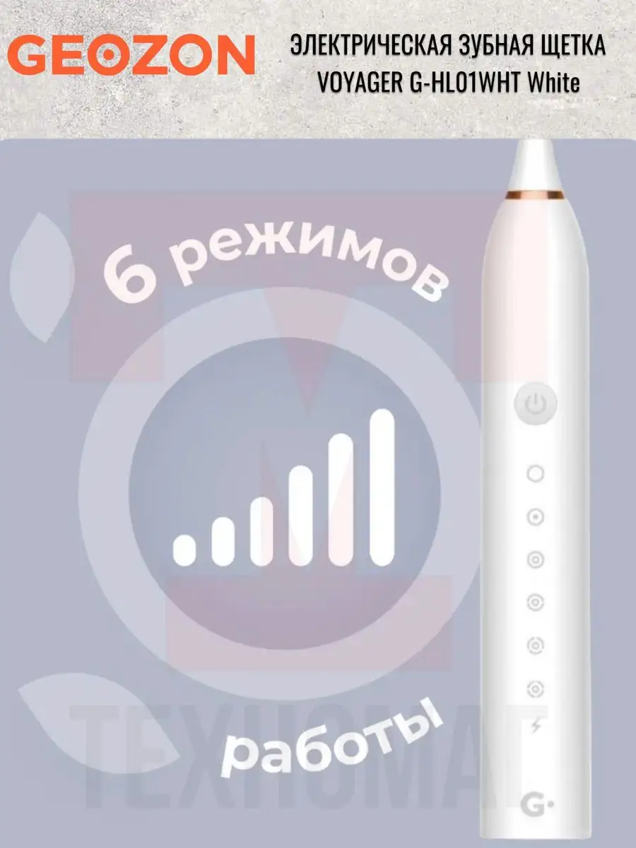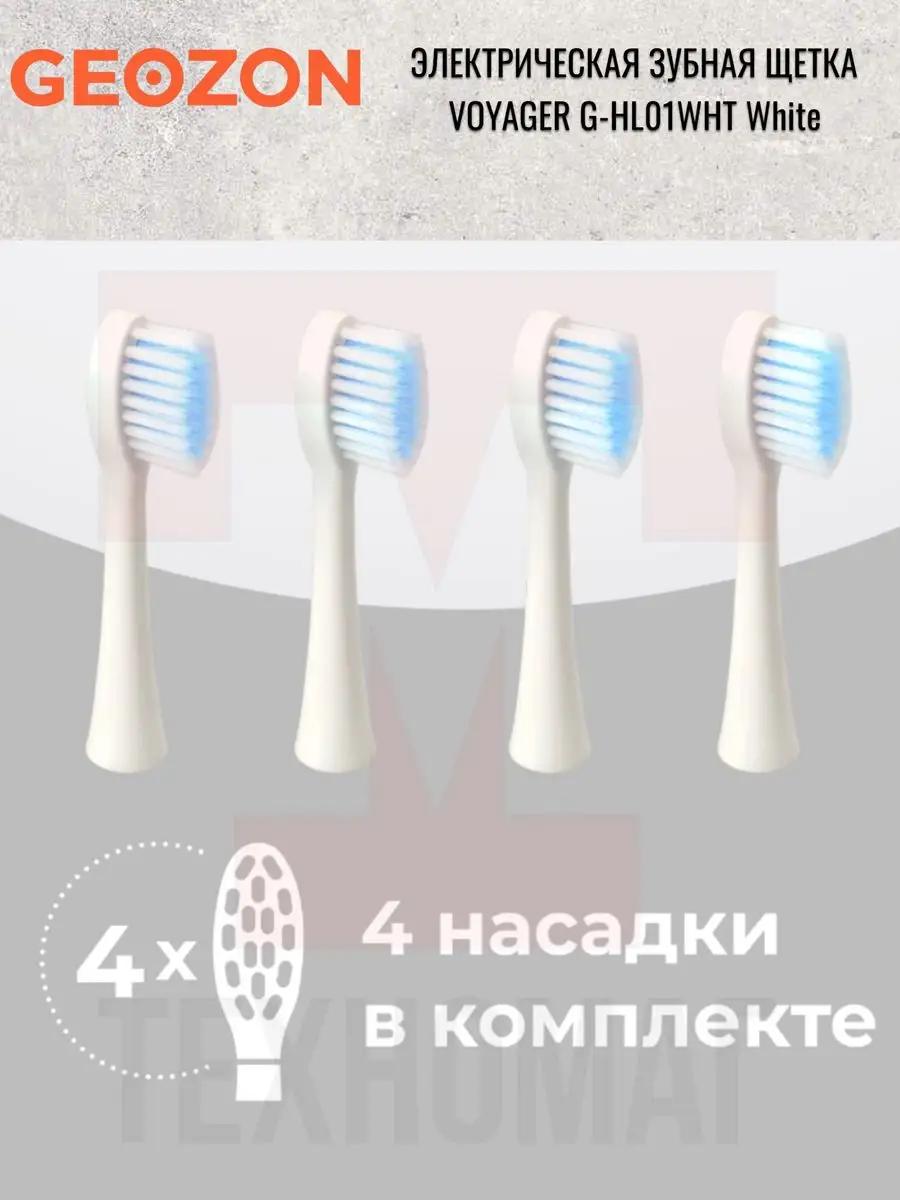 | Подробная комплектация | Электрическая зубная щетка GEOZON VOYAGER, Сменные насадки (4 шт), Зарядный кабель, Инструкция пользователя |