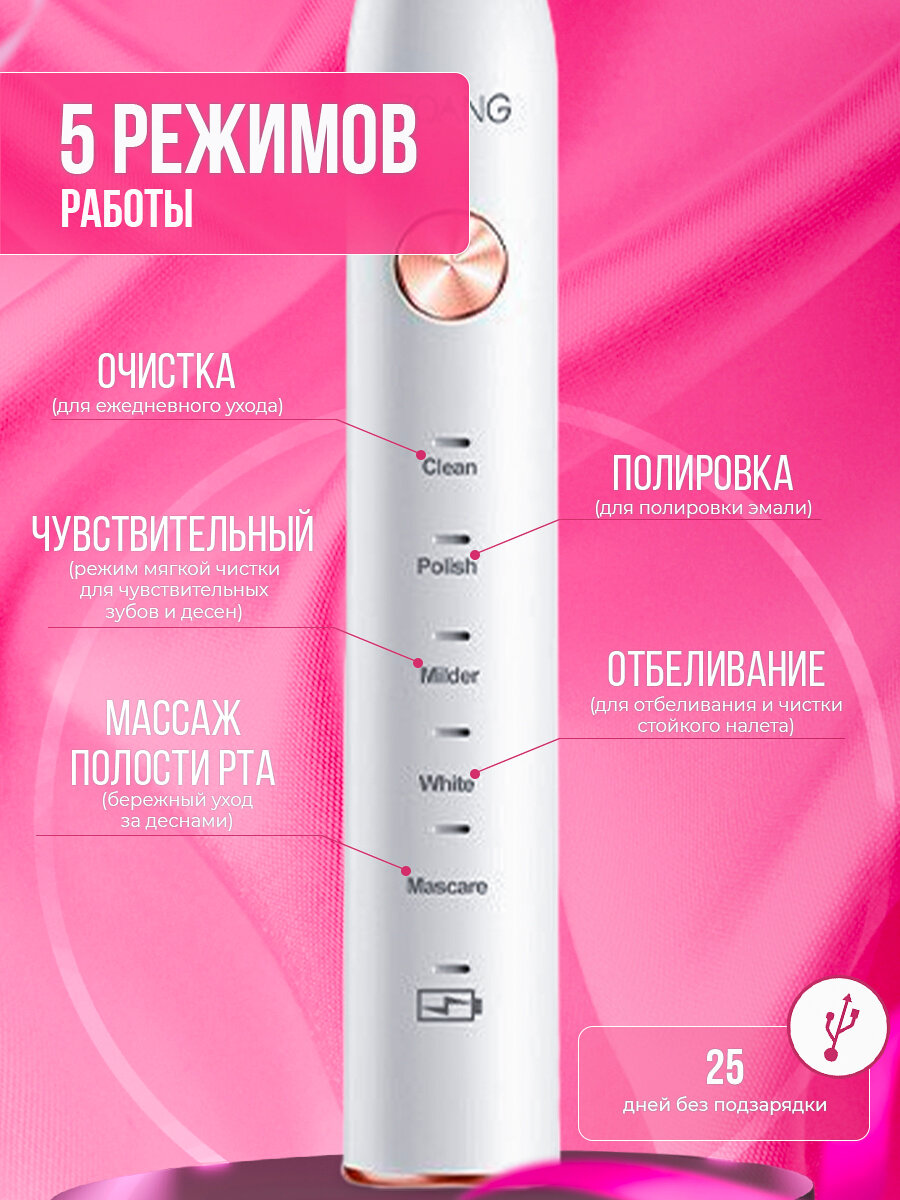 | Режимы работы | ежедневная чистка / массаж / отбеливание / полировка / уход за деснами |