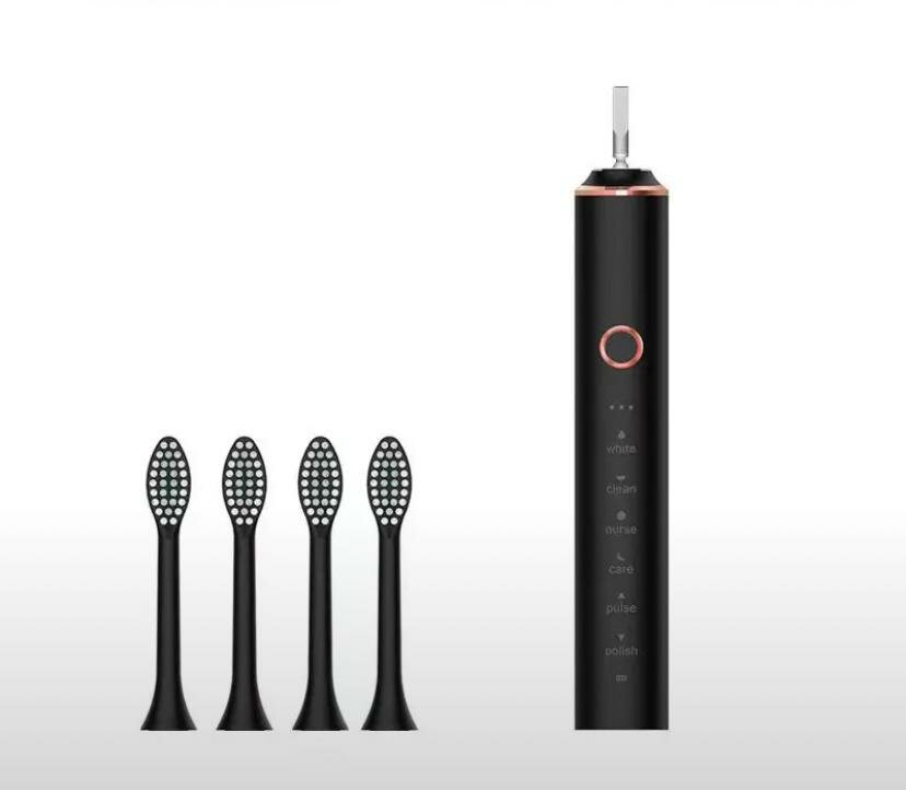 Купить Электрическая зубная щетка для чистки зубов и полости рта, 6 режимов, с 4-мя сменными насадками , цвет черный