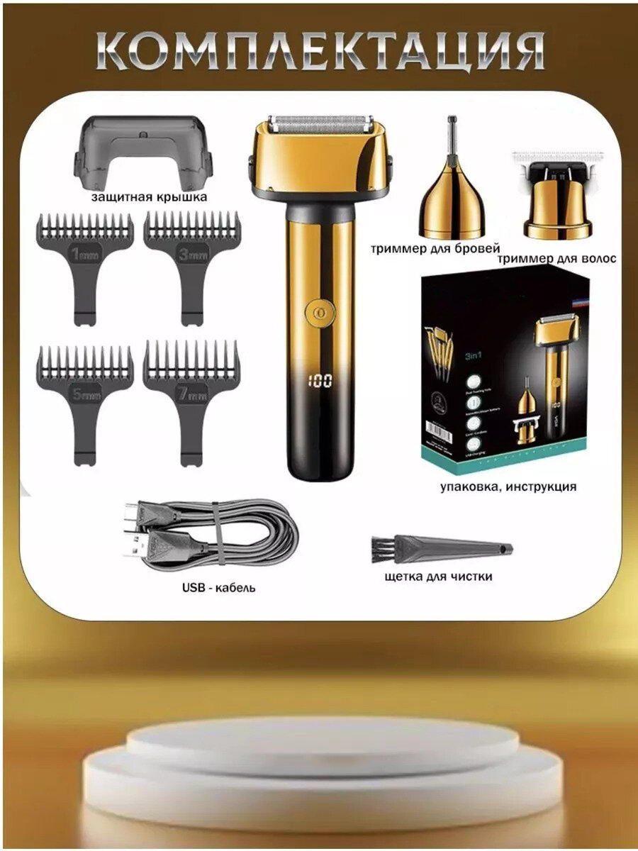| Особенности | быстрая зарядка / дисплей / насадка для стрижки волос / питание от USB / триммер |