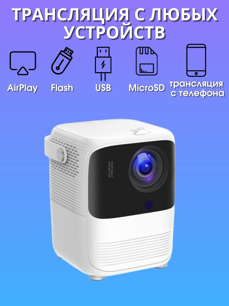 Купить Проектор для домашнего кинотеатра, портативный мини проектор для дома на стену, портативный проектор Full HD, белый