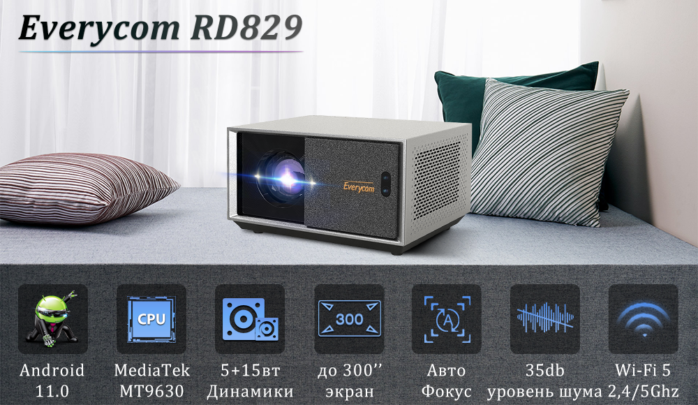 Проектор Everycom RD829 (Android, 12000 люмен, 1080p) интересное: