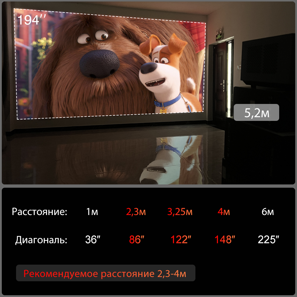| Мин. проекционное расстояние | 1 м |