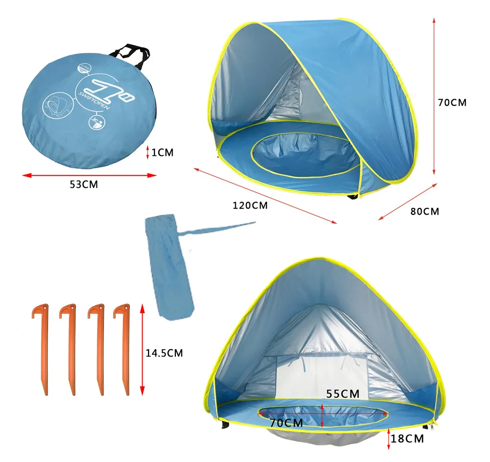 Купить Детская солнцезащитная пляжная палатка с бассейном, водонепроницаемая, складная конструкция