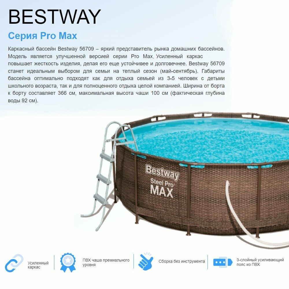 Каркасный бассейн Bestway Steel Pro MAX «Ротанг» d366х100 см, 9150 л, фильтр, лестница интересное: