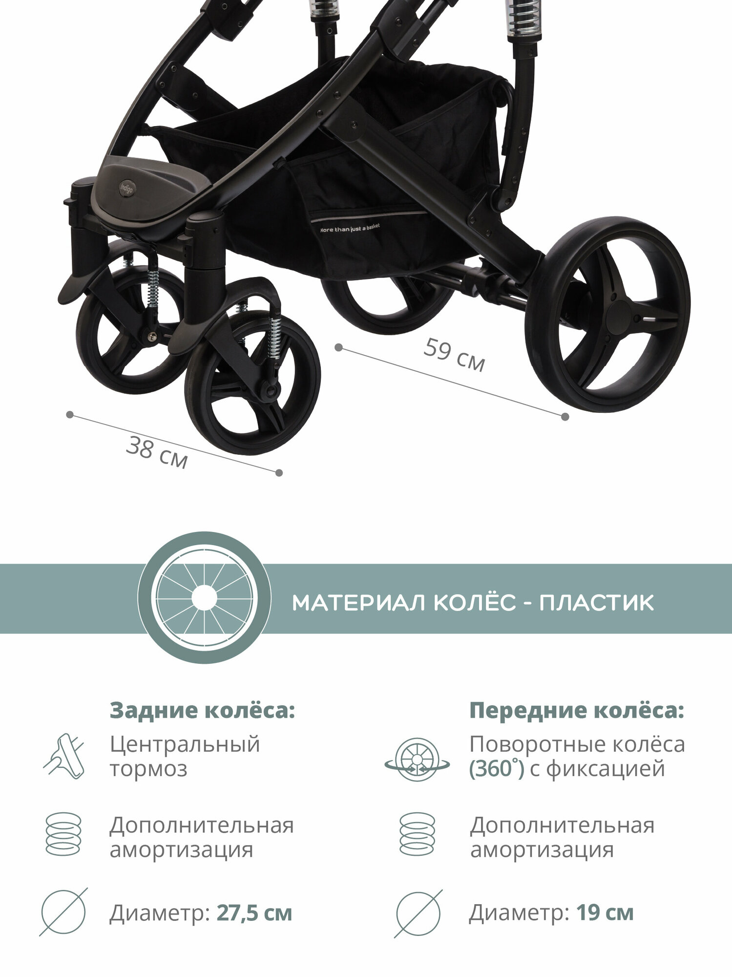 | Колеса | 4 шт., пластиковые, 19-27.50 см |