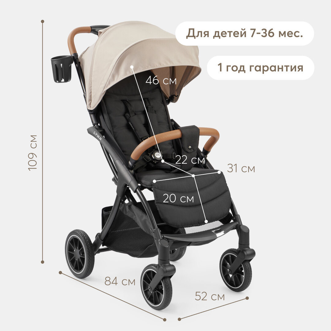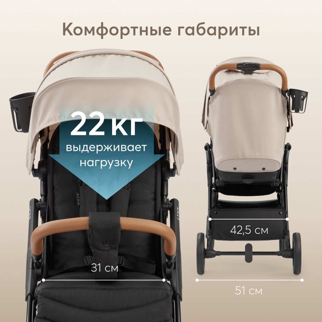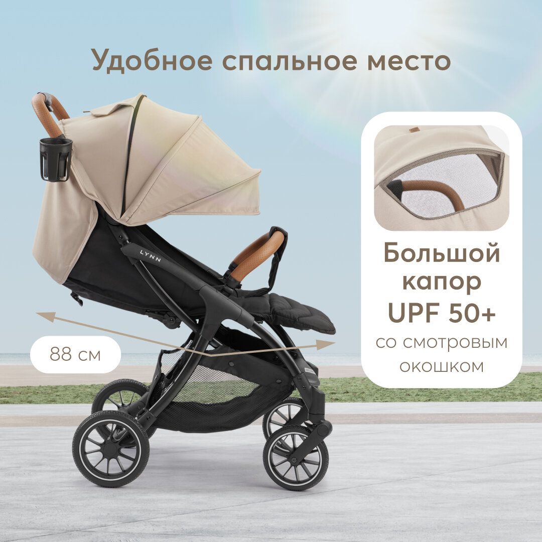 Купить Коляска прогулочная детская Lynn от Happy Baby, в комплекте: дождевик, москитная сетка, чехол на ножки, матрасик, подстаканник, бежевый