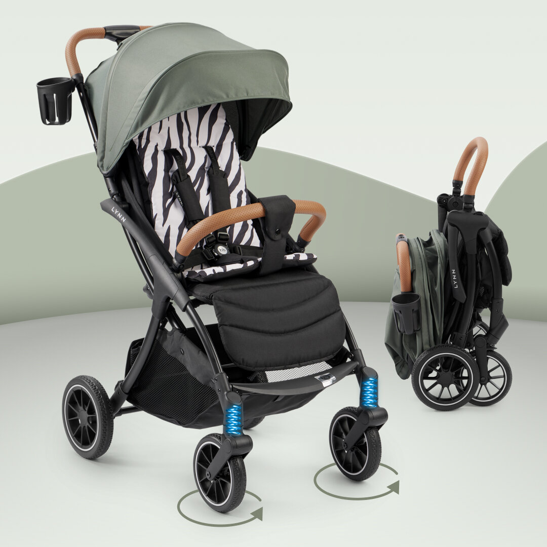 Купить Коляска прогулочная детская Lynn от Happy Baby, в комплекте: дождевик, москитная сетка, чехол на ножки, матрасик, подстаканник, зеленый