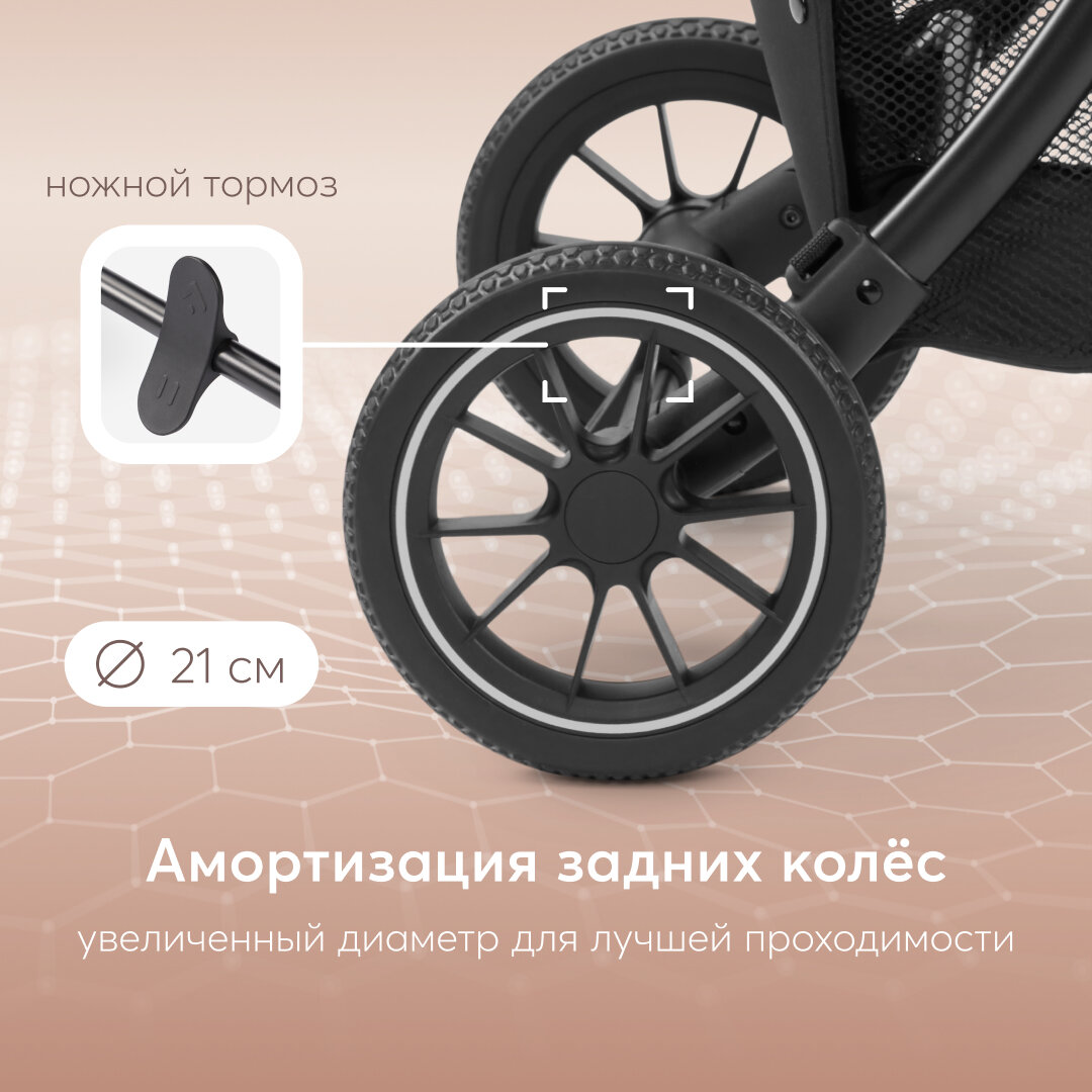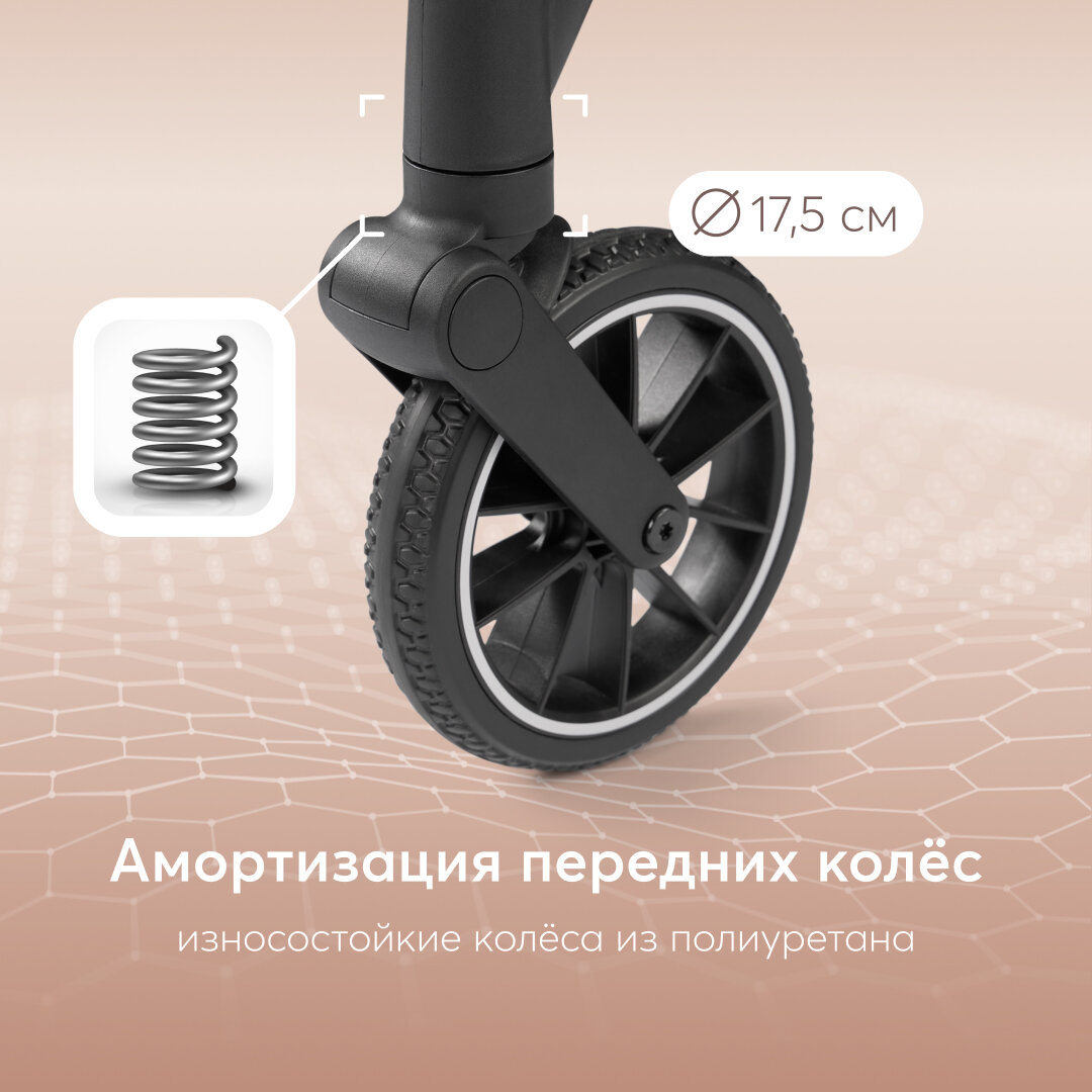 Коляска прогулочная детская Lynn от Happy Baby, в комплекте: дождевик, москитная сетка, чехол на ножки, матрасик, подстаканник, бежевый