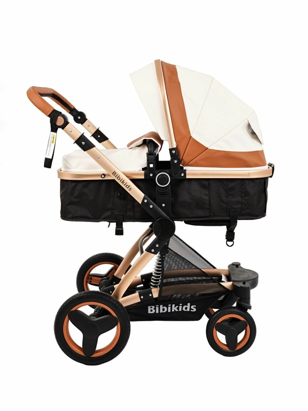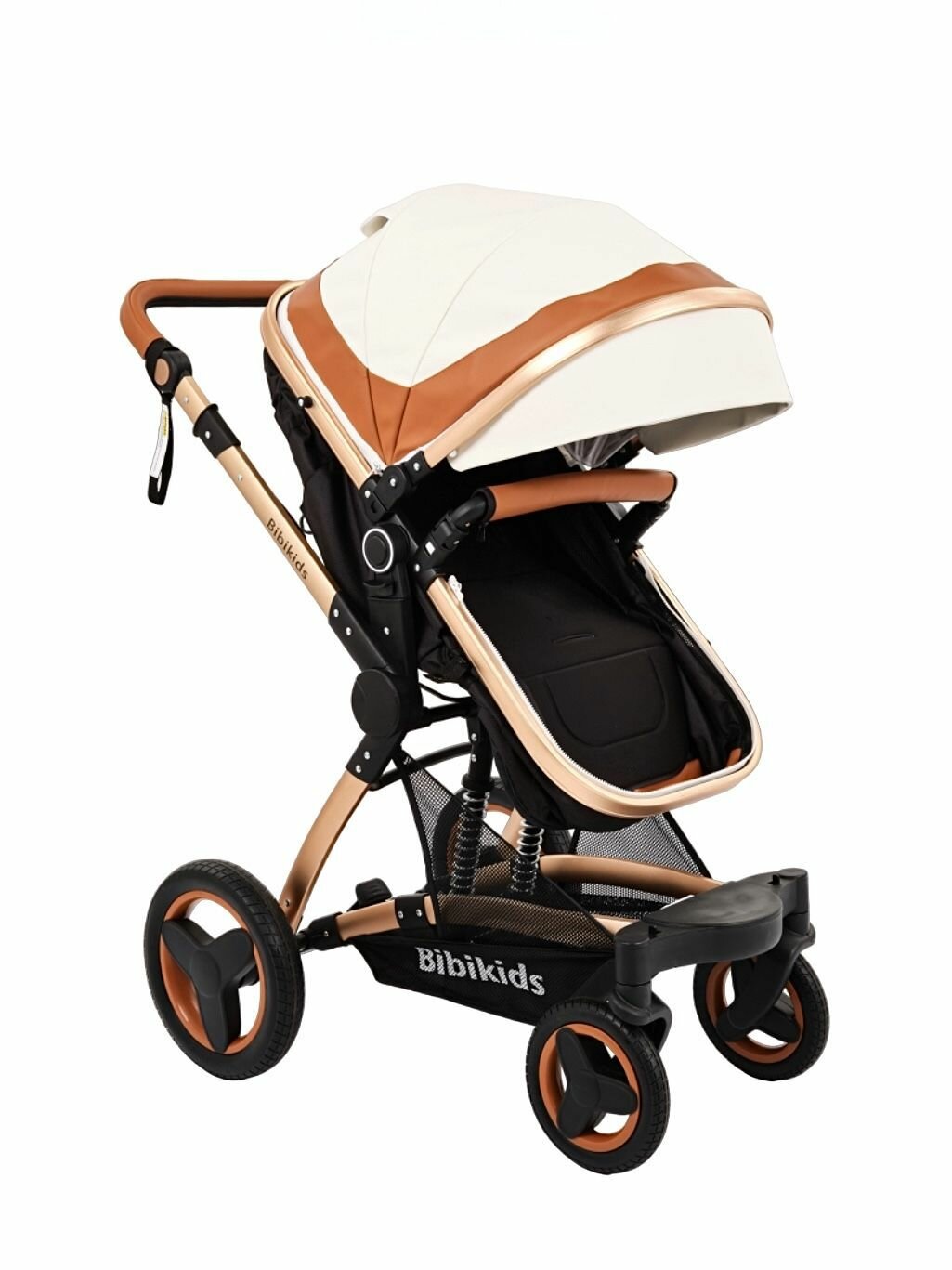 Купить Детская коляска 2 в 1 трансформер Bibikids Belecoo X6, люлька для новорожденных и прогулочная до 3х лет, Бело-коричневая