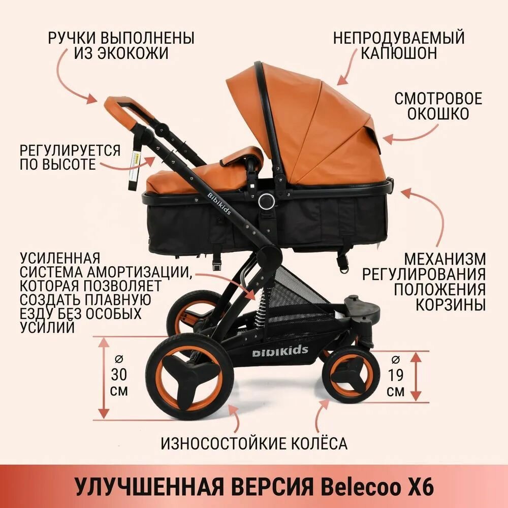 СохранитьДетская коляска 2 в 1 трансформер Bibikids Belecoo X6, люлька для новорожденных и прогулочная до 3х лет, Бело-коричневая интересное:
