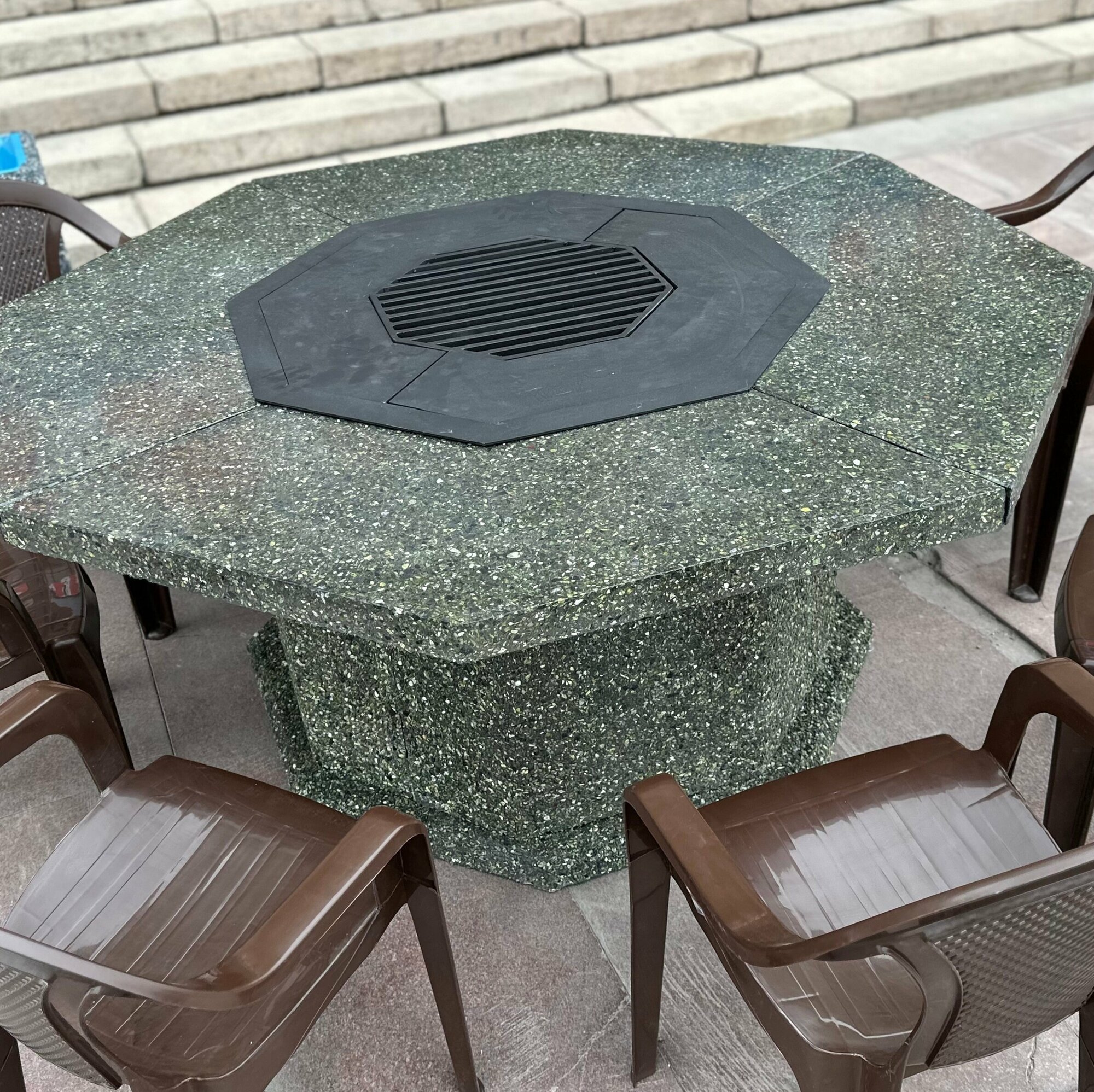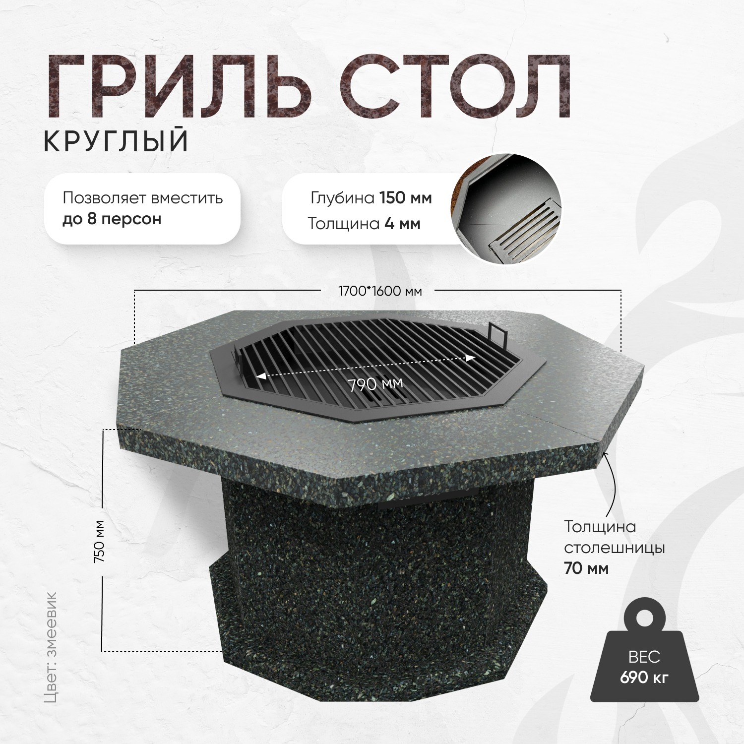 Гриль стол 1600х1700 мм с мангалом, фактура Змеевик темный интересное: