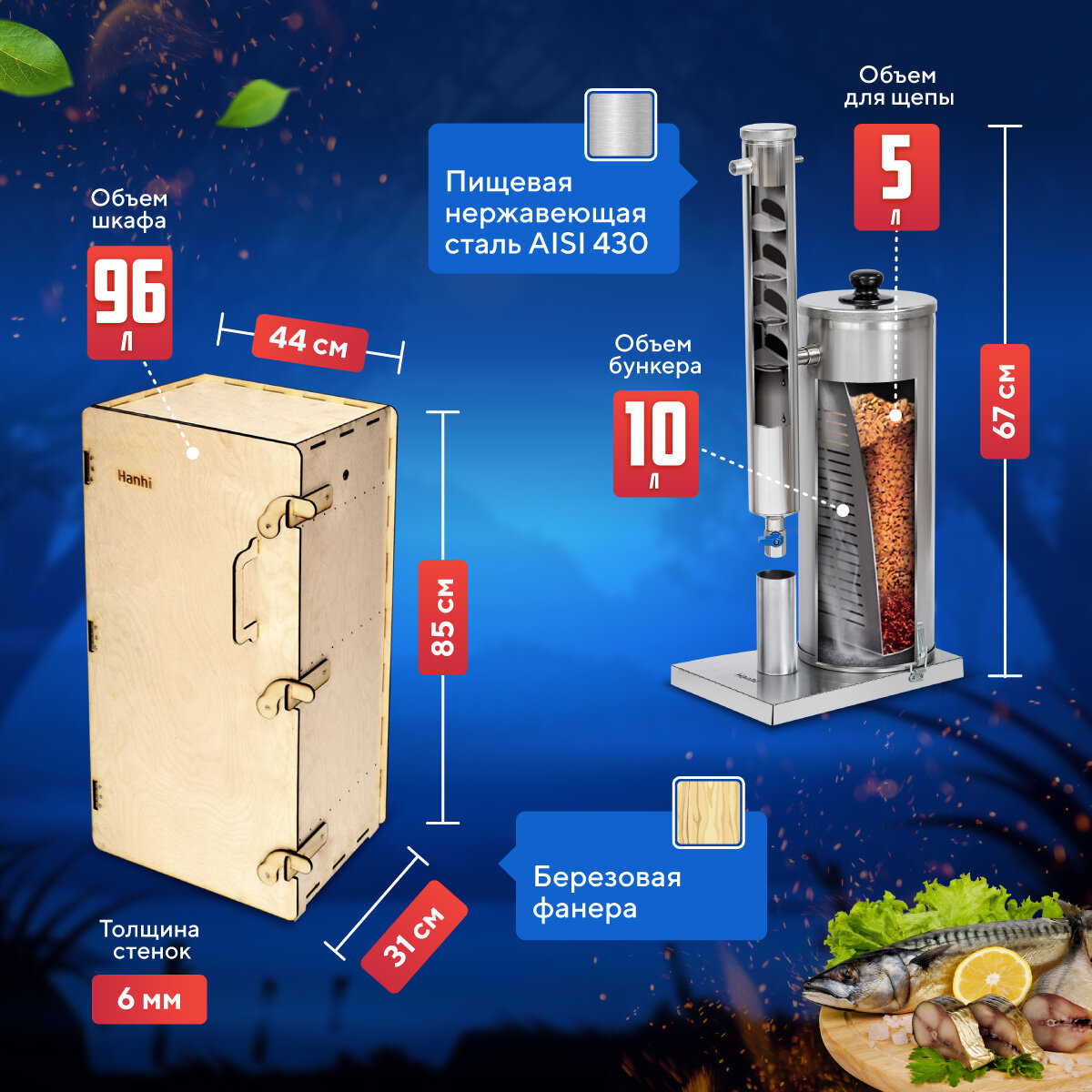 Коптильня холодного копчения с электрическим дымогенератором Hanhi 96 литра / Коптильный шкаф Ханхи деревянный интересное: