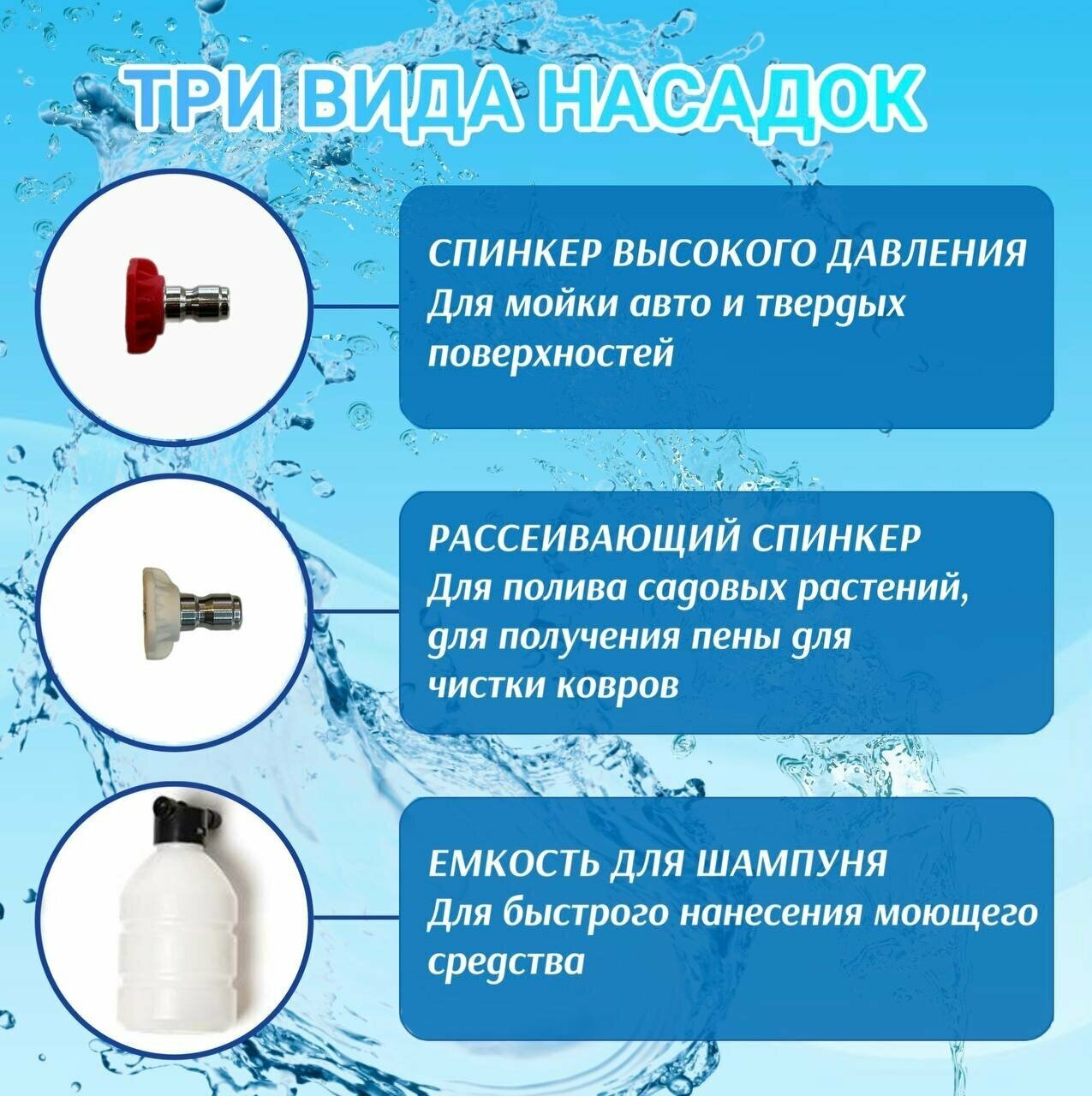 | Насадки | веерная насадка / пеногенератор / сопло стандартной насадки |