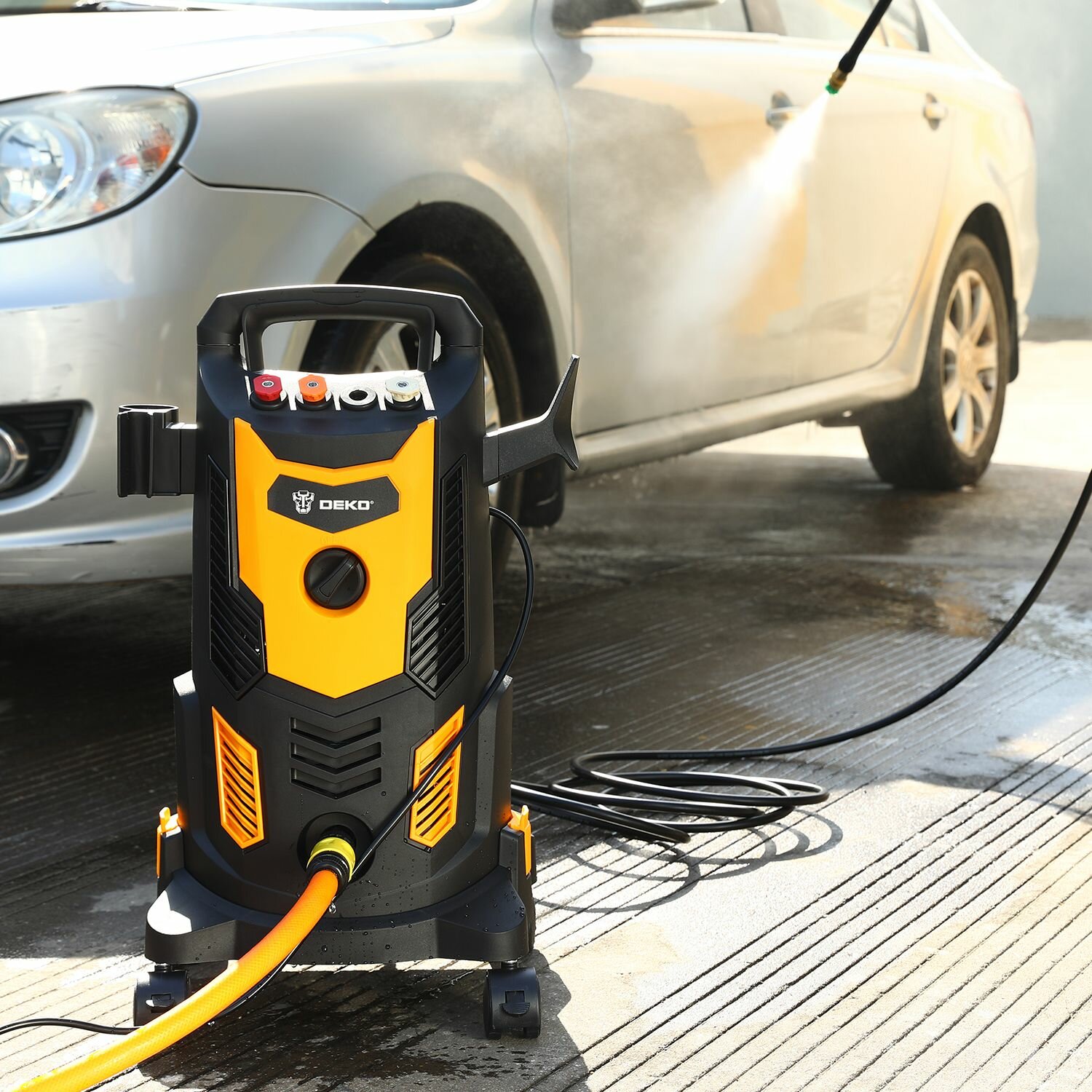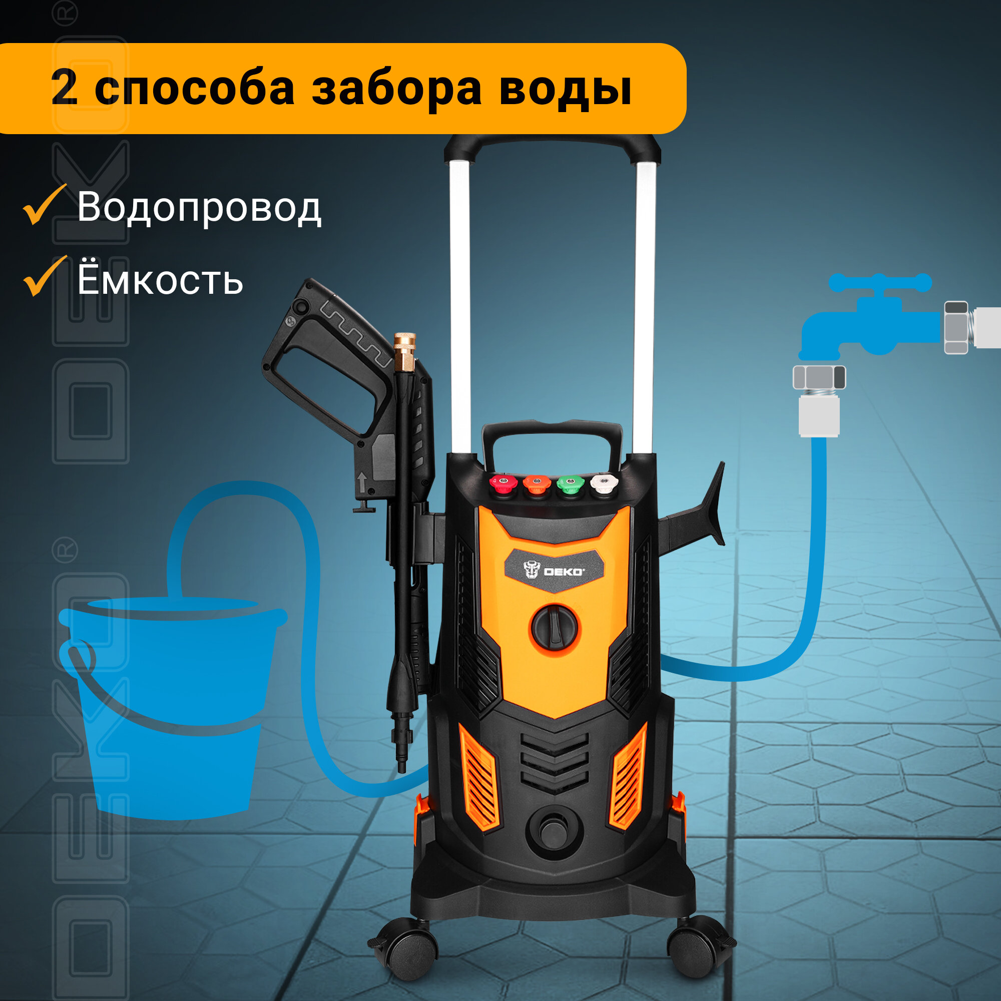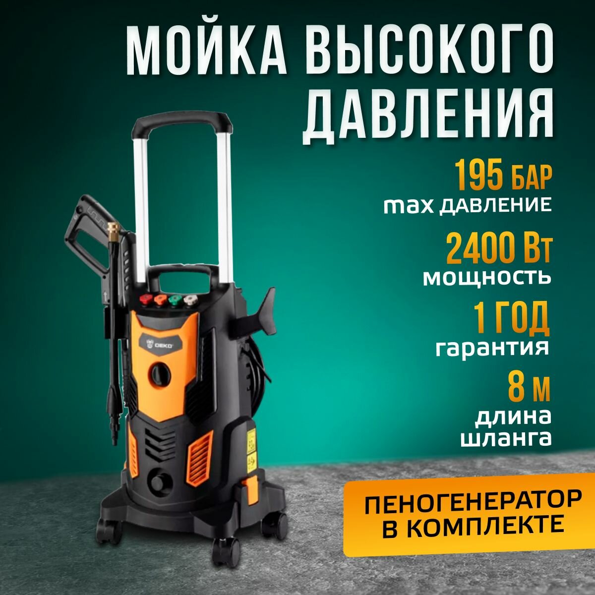 Мойка высокого давления для автомобиля DEKO DKCW195, автомойка, минимойка для машины, пистолет и шланг 8 м, пеногенератор и форсунки в комплекте, на колесах с функцией забора воды из емкостей