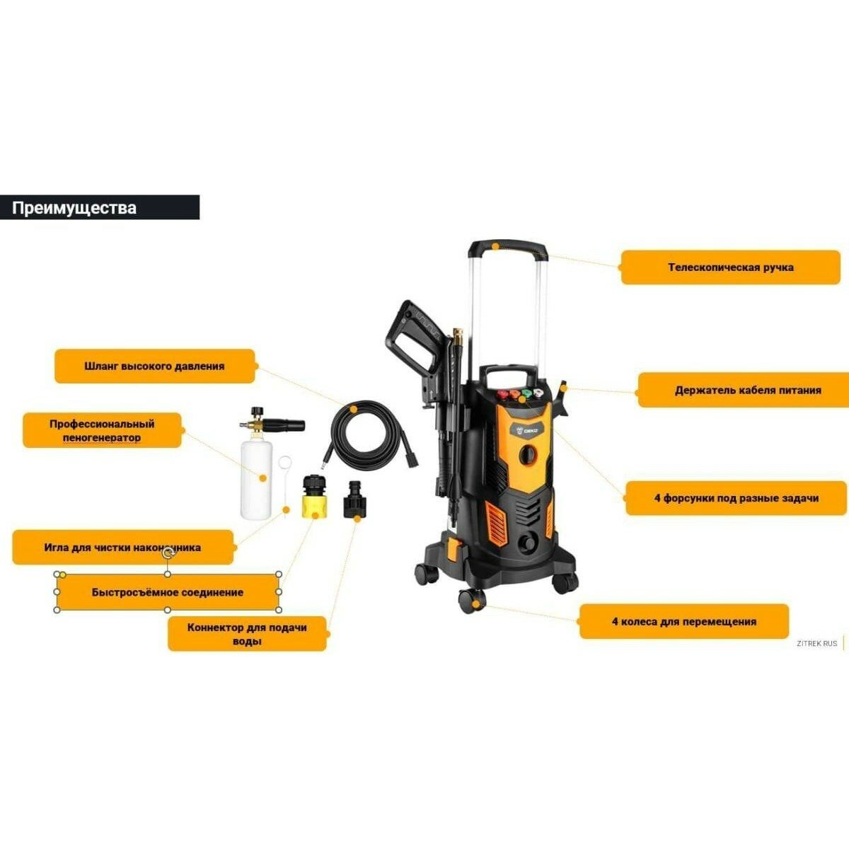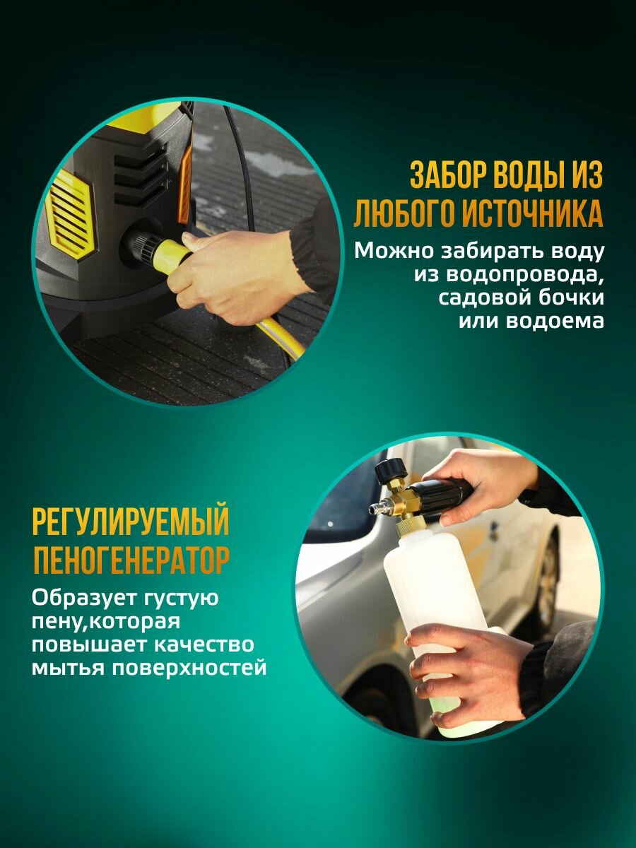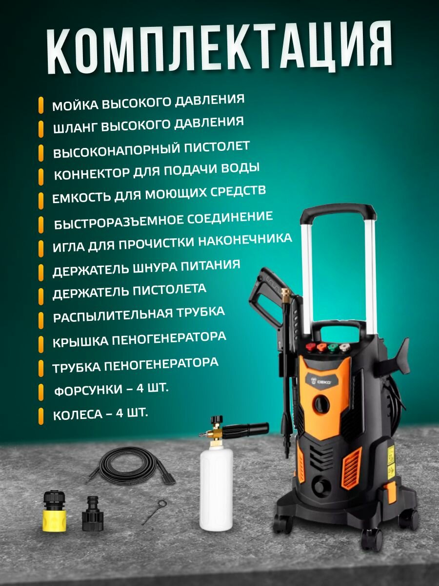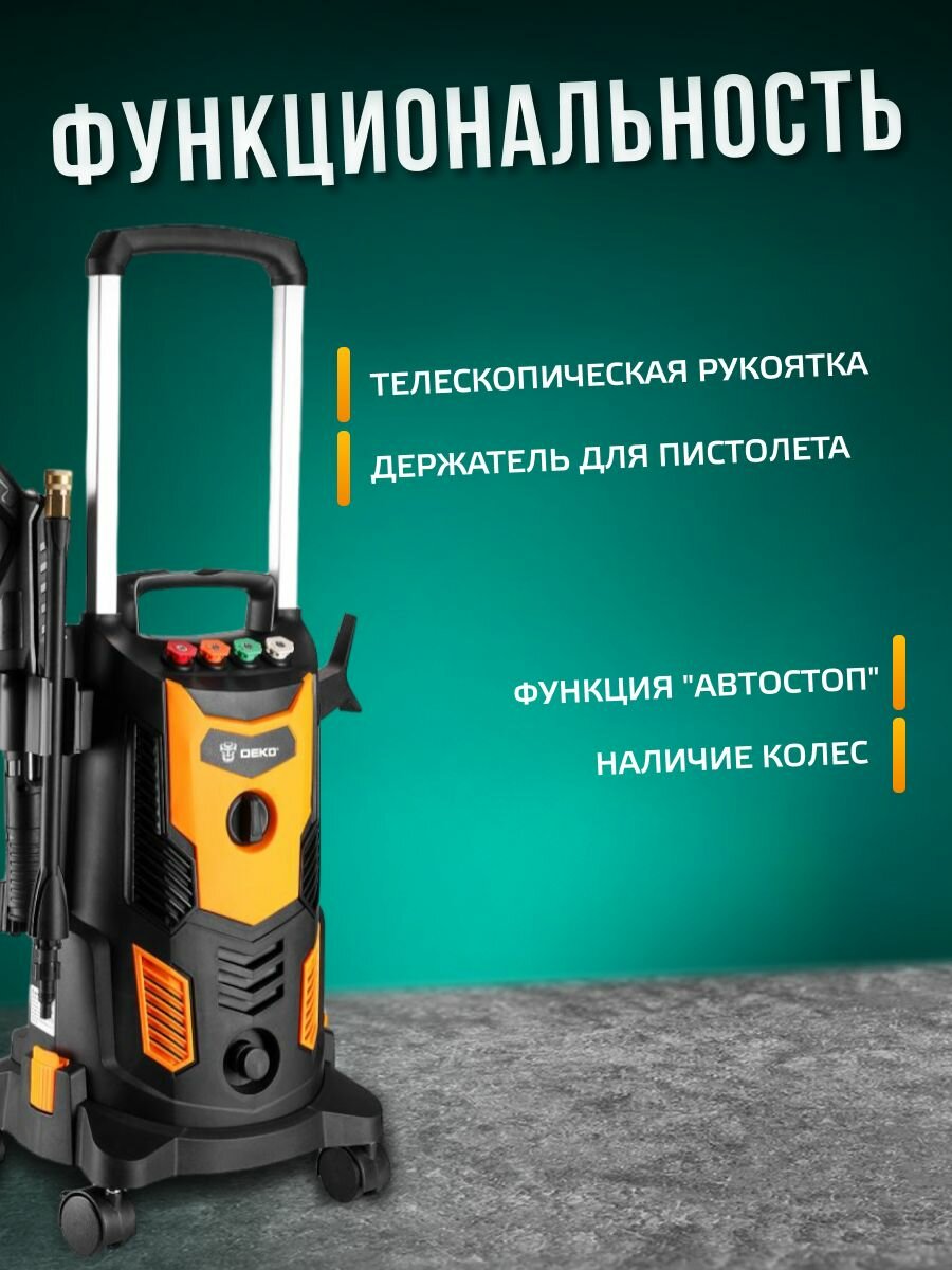 Мойка высокого давления для автомобиля DEKO DKCW195, автомойка, минимойка для машины, пистолет и шланг 8 м, пеногенератор и форсунки в комплекте, на колесах с функцией забора воды из емкостей