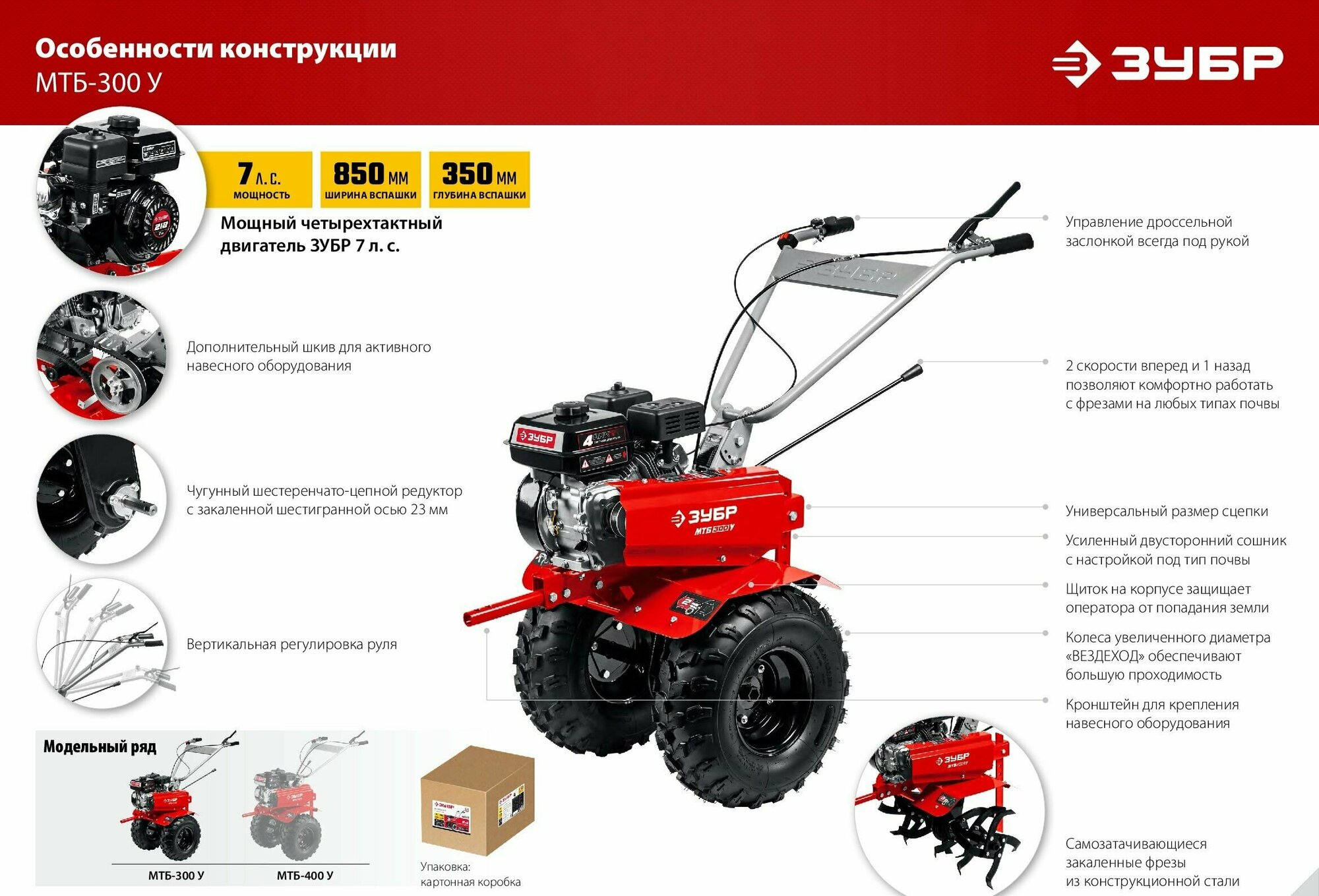 ЗУБР увеличенные колеса, 7 л.с., мотоблок с понижающей передачей (МТБ-400 У) интересное: