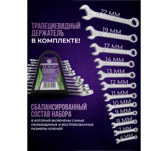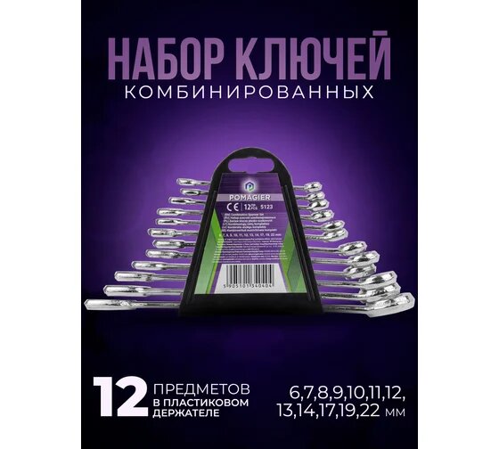 Набор ключей комбинированных 12пр.(6-14,17,19,22мм),в пластиковом держателе интересное: