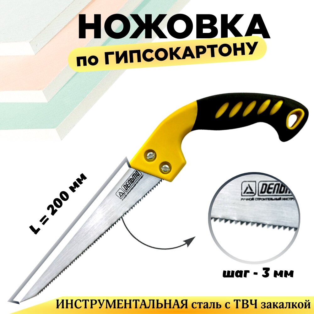 Ножовка по гипсокартону с двухкомпонентной цветной ручкой, НГК-200 Премиум с ТВЧ закалкой и заточенной передней кромкой Дельта 10380 интересное:
