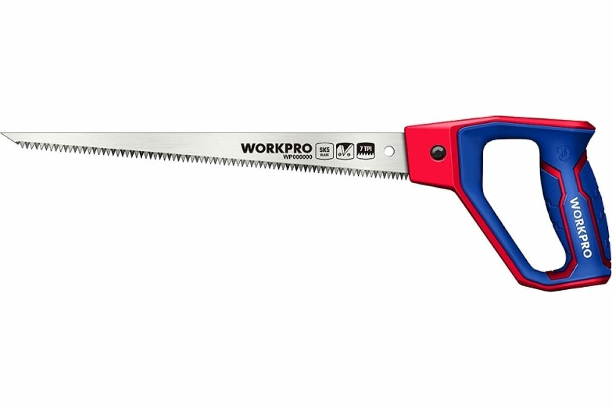 Ножовка ручная по дереву 500 мм WP215007, WORKPRO, цвет синий/красный