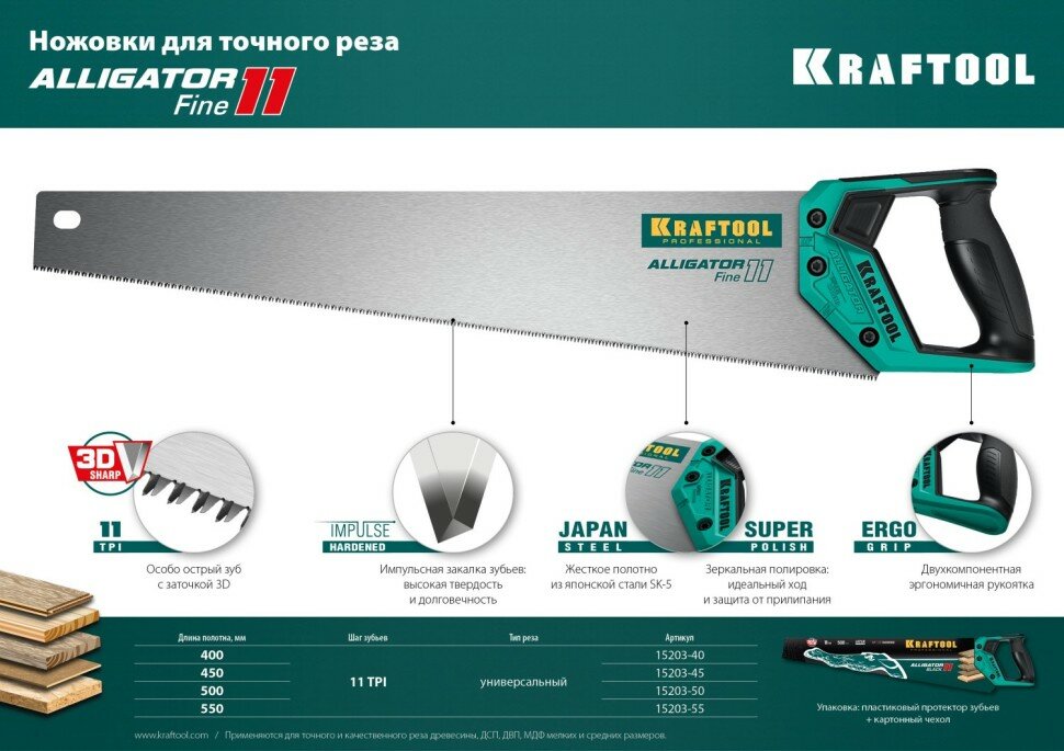 Купить KRAFTOOL Ножовка для точного реза "Alligator 11", 550 мм, 11 TPI 3D зуб, KRAFTOOL ( 15203-55 )