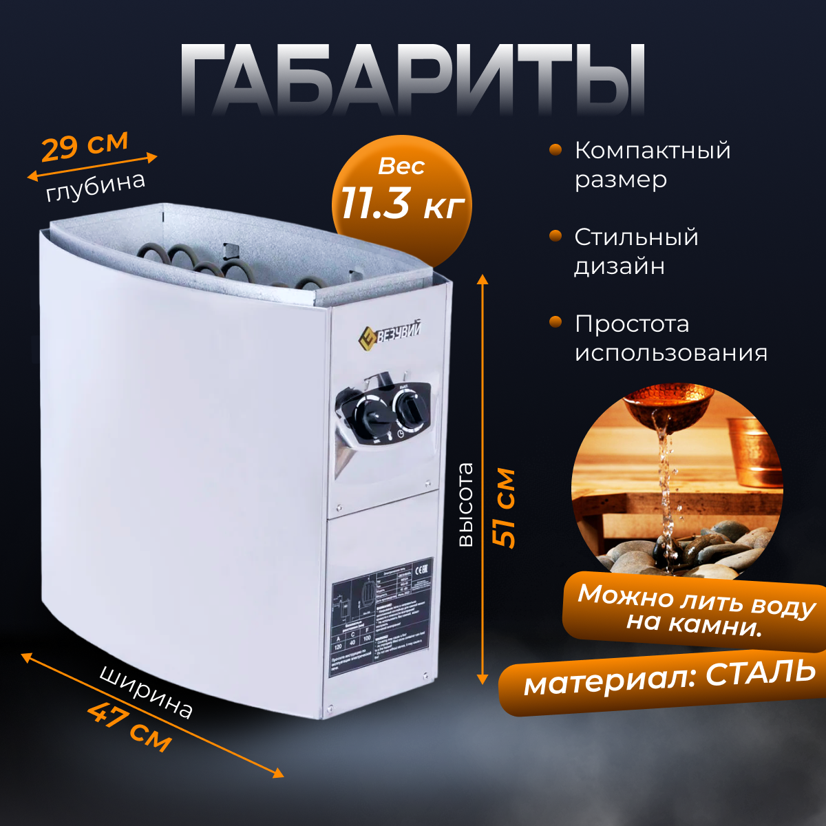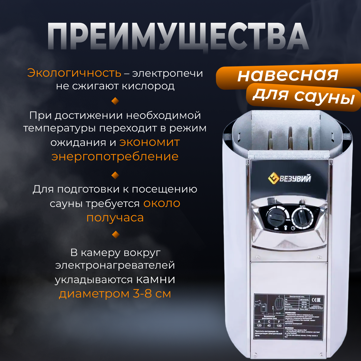 Электрокаменка везувий WEGA-45 интересное: