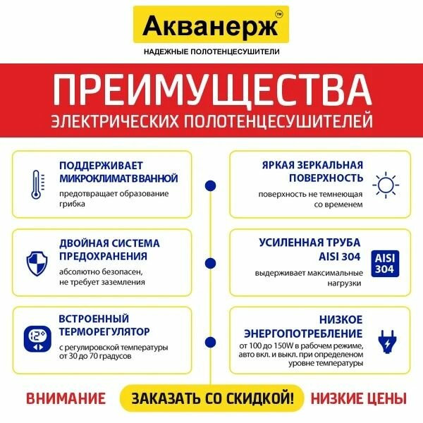 Ниже Вы можете прочитать отзывы на Электрический полотенцесушитель Акванерж Трапеция групповая с полкой 700x400 правый ТЭН, ознакомится с подробными характеристиками, посмотреть интересные обзоры и фотографии на Электрический полотенцесушитель Акванерж Трапеция групповая с полкой 700x400 правый ТЭН.