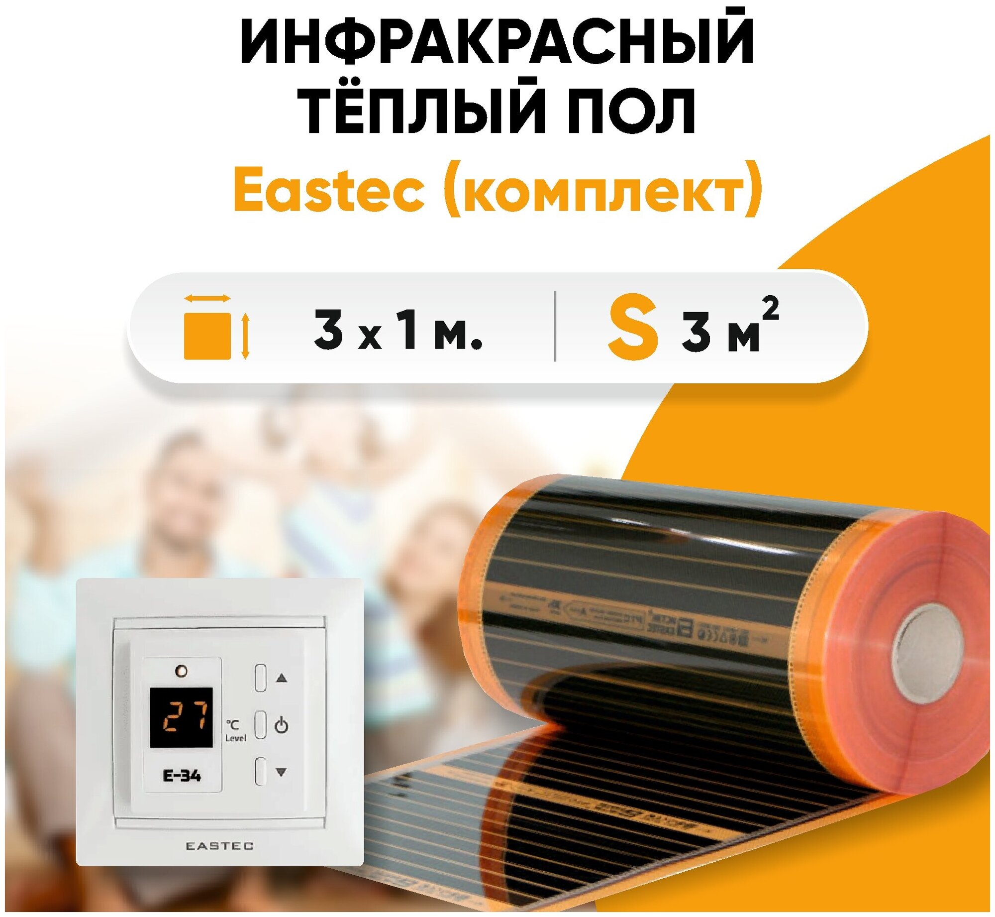 Купить Комплект инфракрасного теплого пола EASTEC под ламинат 3м2 c терморегулятором E-34 (ширина 100см)