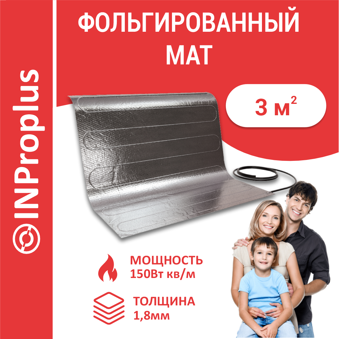 Фольгированный, алюминиевый нагревательный мат INPro+, теплый пол 1,0 кв.м. - 150Вт