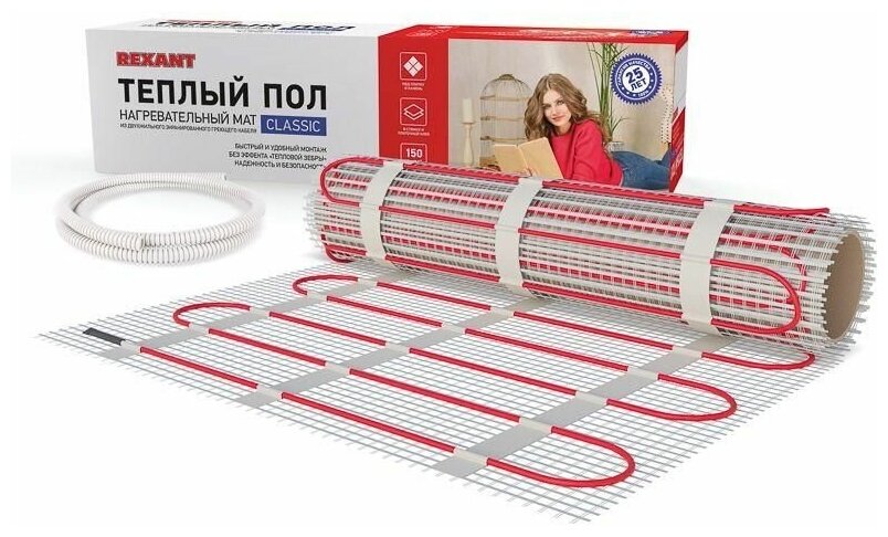 Тёплый пол (нагревательный мат) REXANT Classic, 7,0 м2, 1050 Вт, двухжильный с экраном интересное: