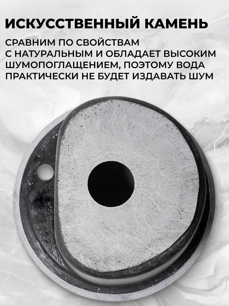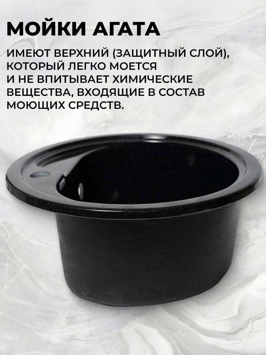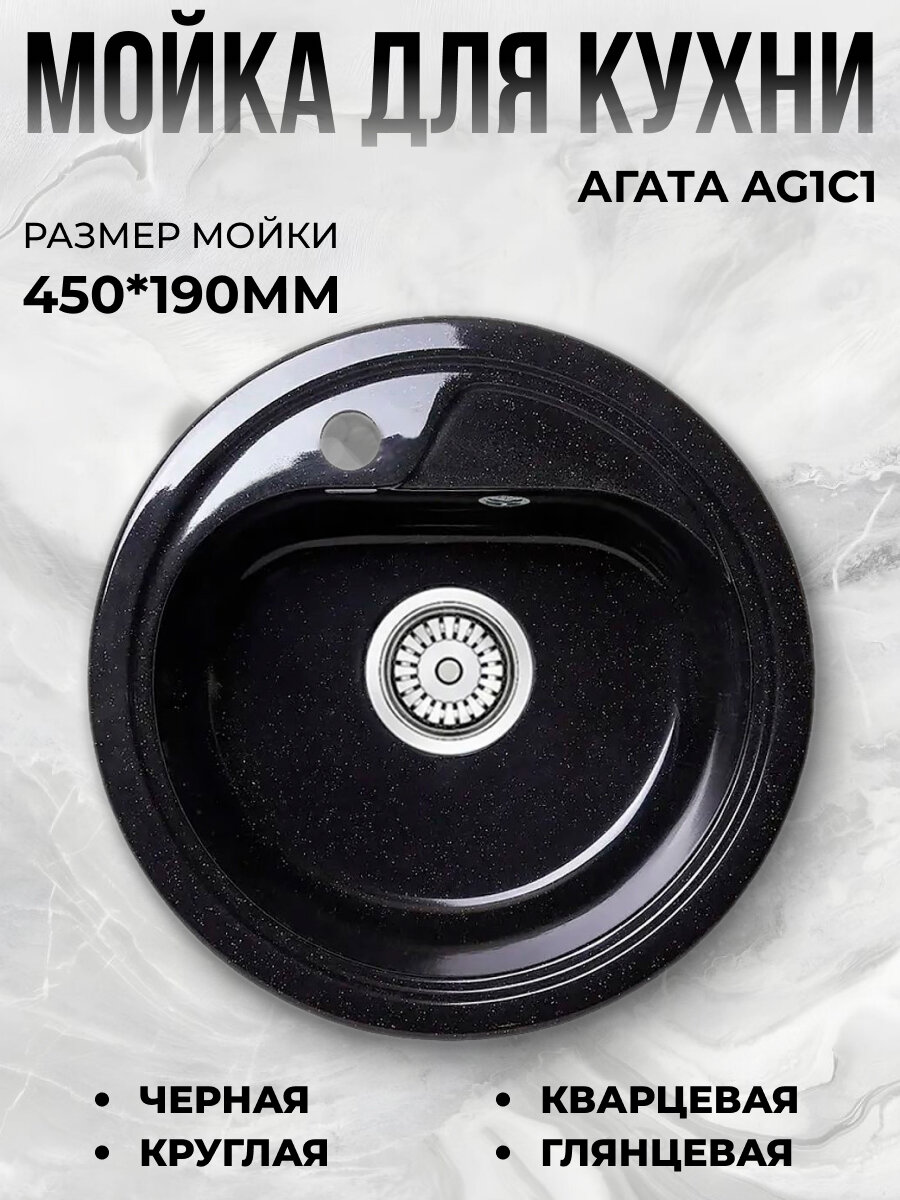 Мойка для кухни Агата AG1C1 черная круглая кварцевая глянцевая 450*190мм интересное:
