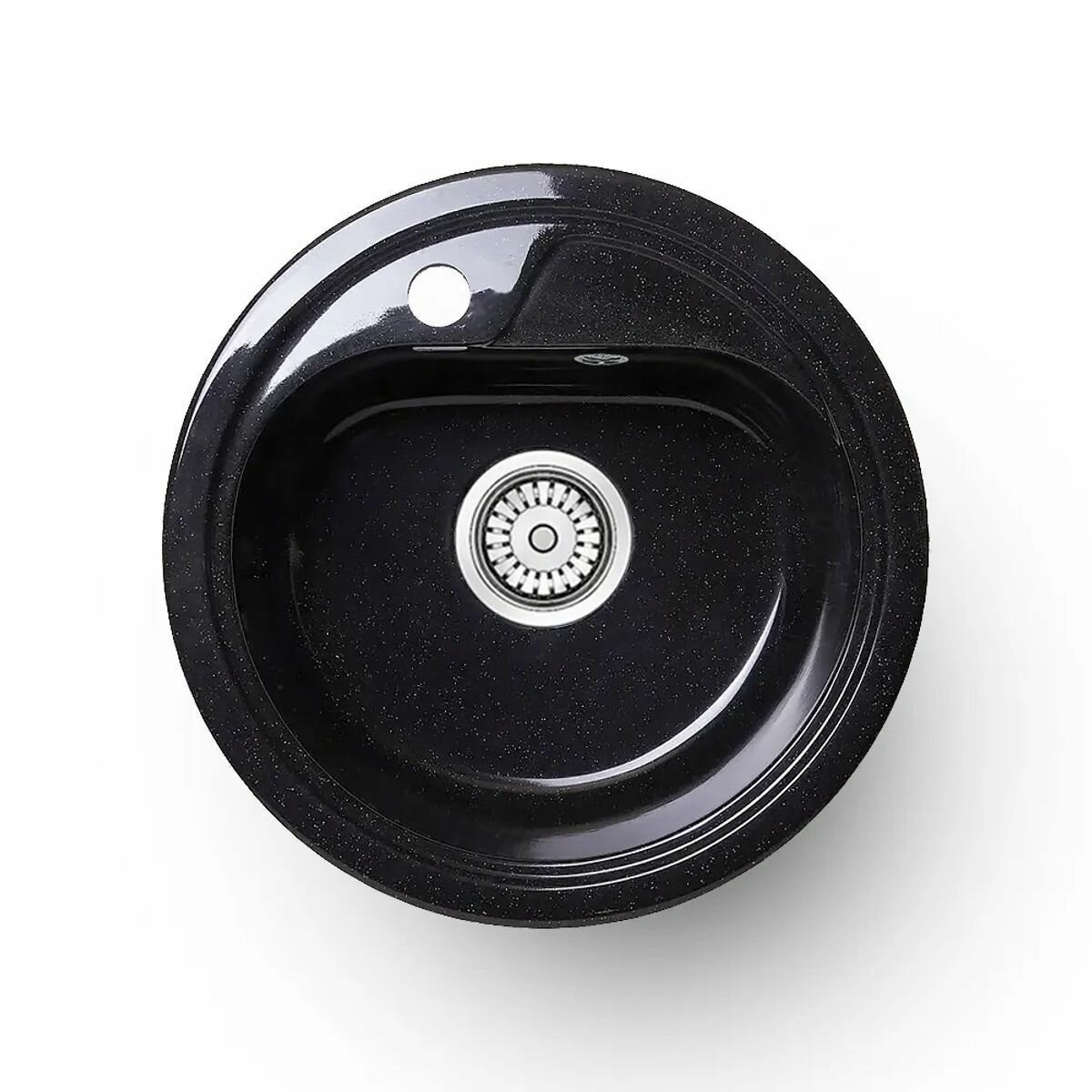 Купить Мойка для кухни Агата AG1C1 черная круглая кварцевая глянцевая 450*190мм