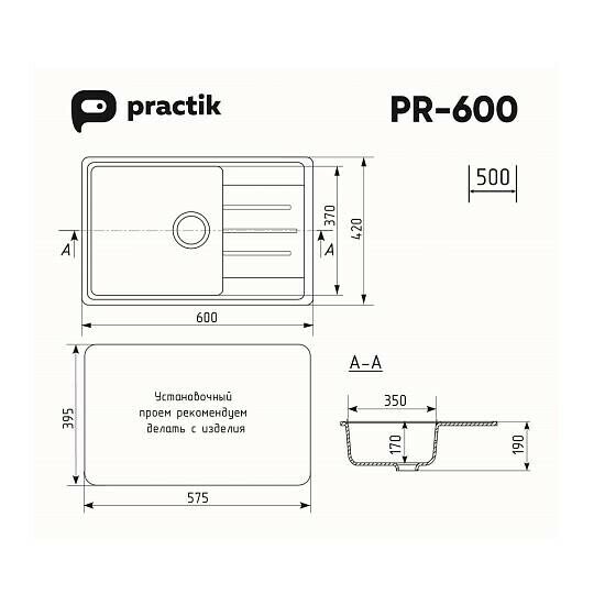 Купить Кухонная мойка Practik PR-M-600-004 (без сифона), черный оникс