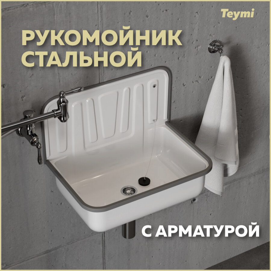Рукомойник стальной Teymi Hanna 50, с арматурой, белый T100112 интересное: