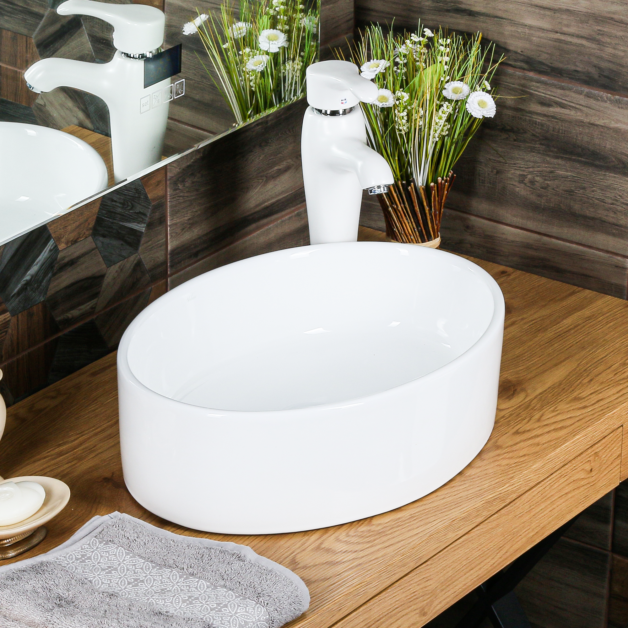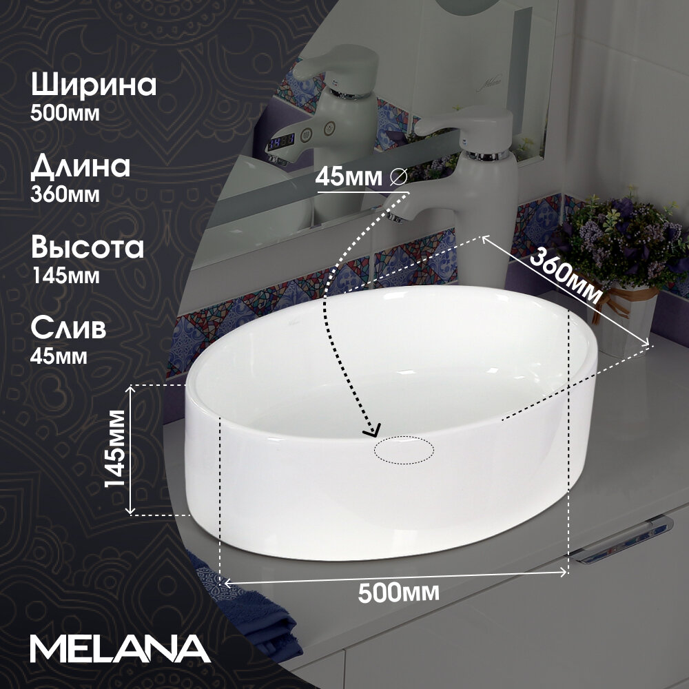 Накладная раковина "Melana" MLN-7151, фаянс, белая, овальная
