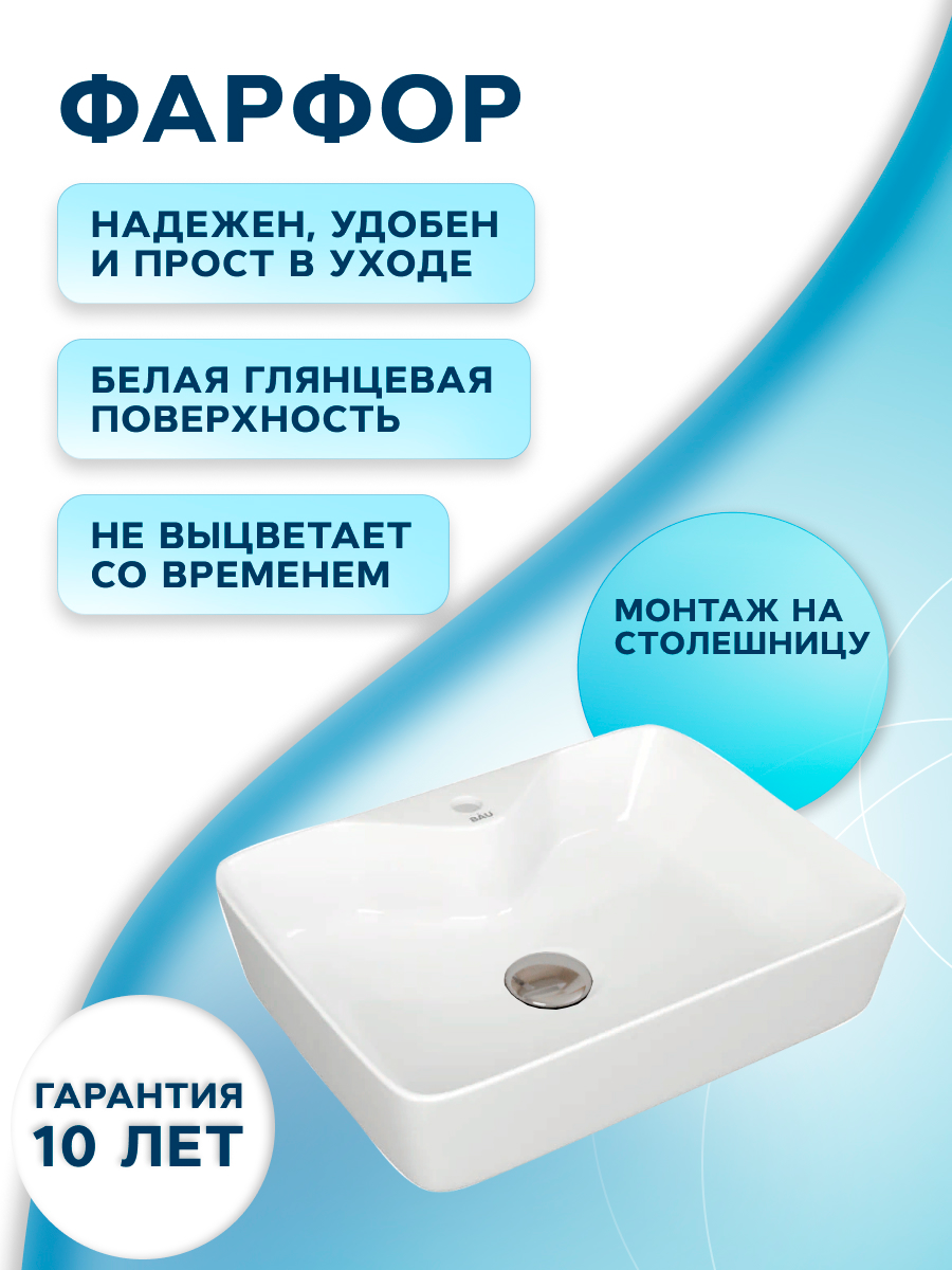 Раковина накладная прямоугольная BAU Cerama 48х37, с отверстием под смеситель, белая + смеситель Hotel Still, нержавеющая сталь интересное:
