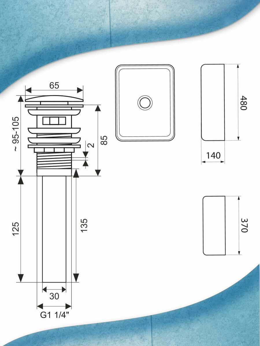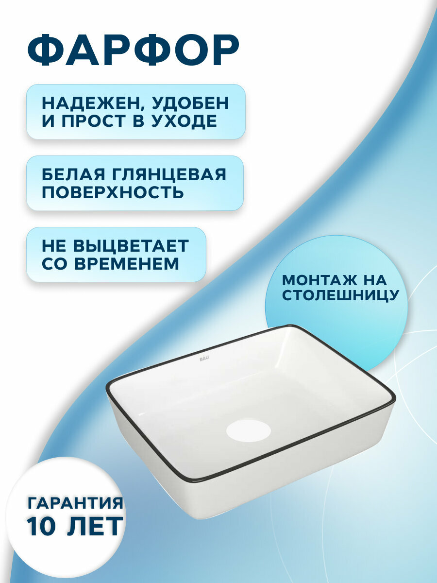 Раковина накладная прямоугольная BAU Hotel 48х37, белая, черный кант + выпуск клик-клак, белый интересное: