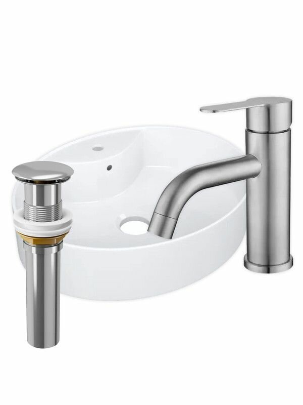 Раковина накладная со смесителем и выпуском (BAU Nimb 51х41, с отверстием, белая + смеситель Dream, нерж. сталь, выпуск клик-клак хром) интересное: