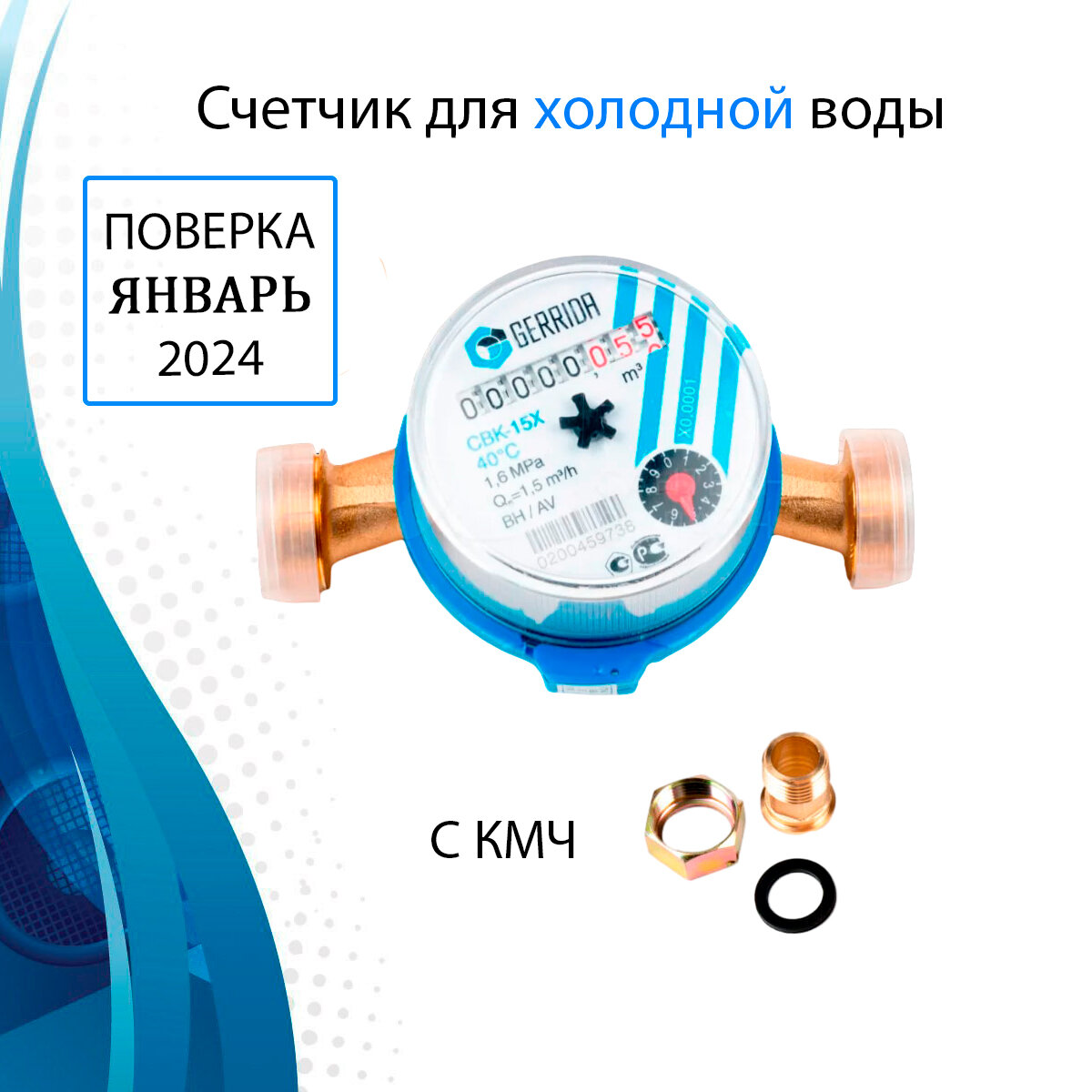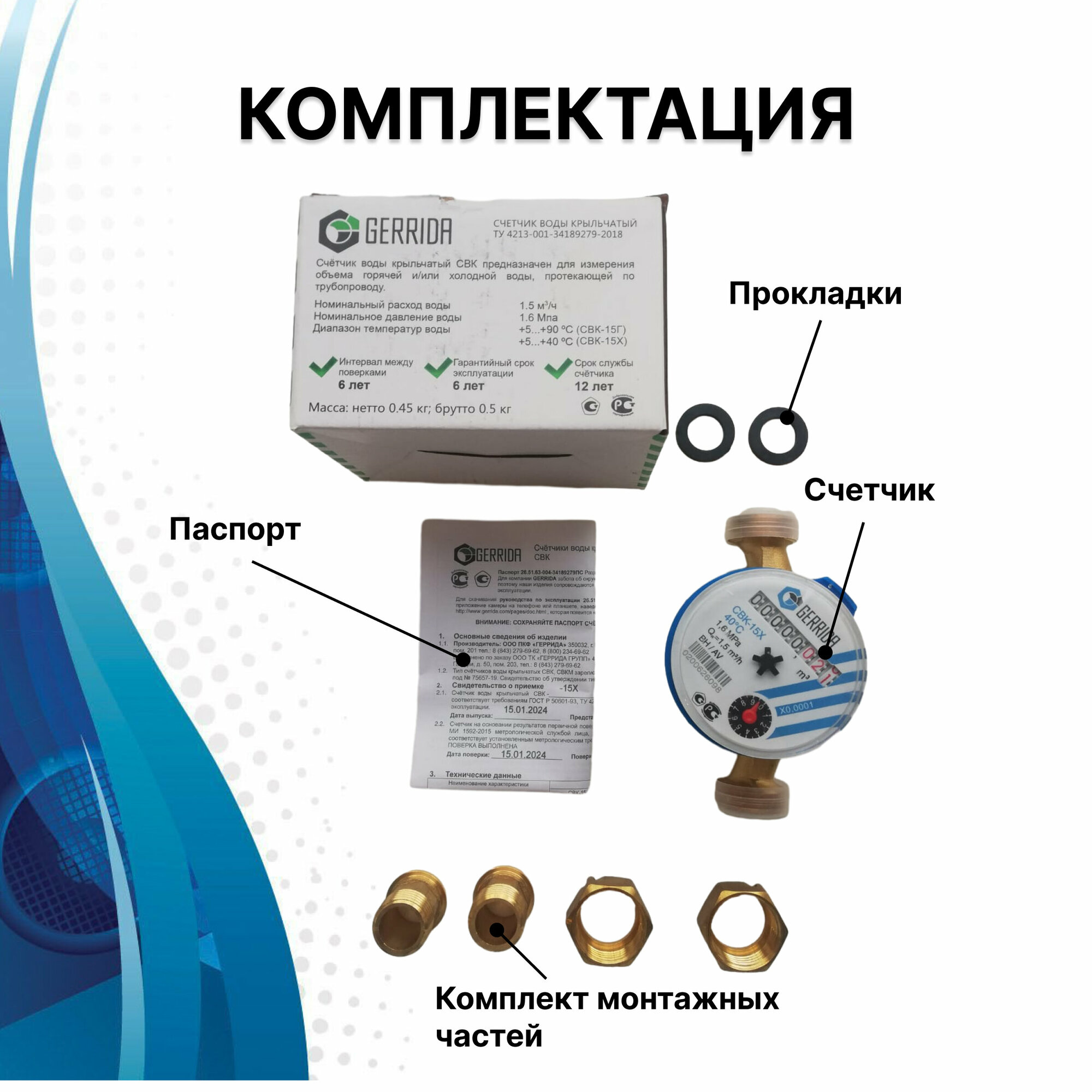 Купить Счетчик для холодной воды Gerrida СВК-15Х с комплектом монтажных частей