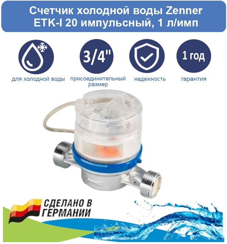 Счетчик холодной воды Zenner ETK-I 20 импульсный, 1 л/имп интересное: