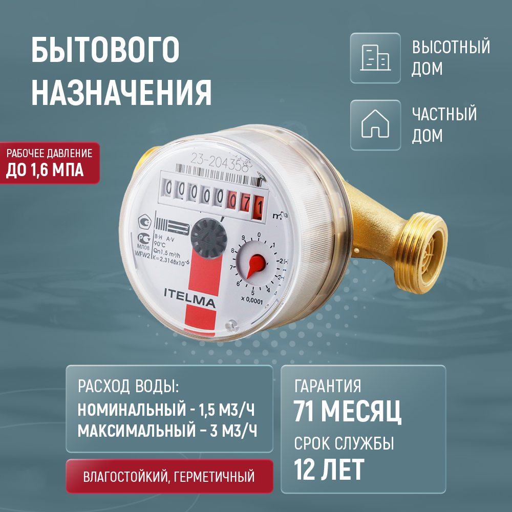 Счетчики воды универсальные Itelma WFW 20-110, комплект из 2 шт., без кмч интересное: