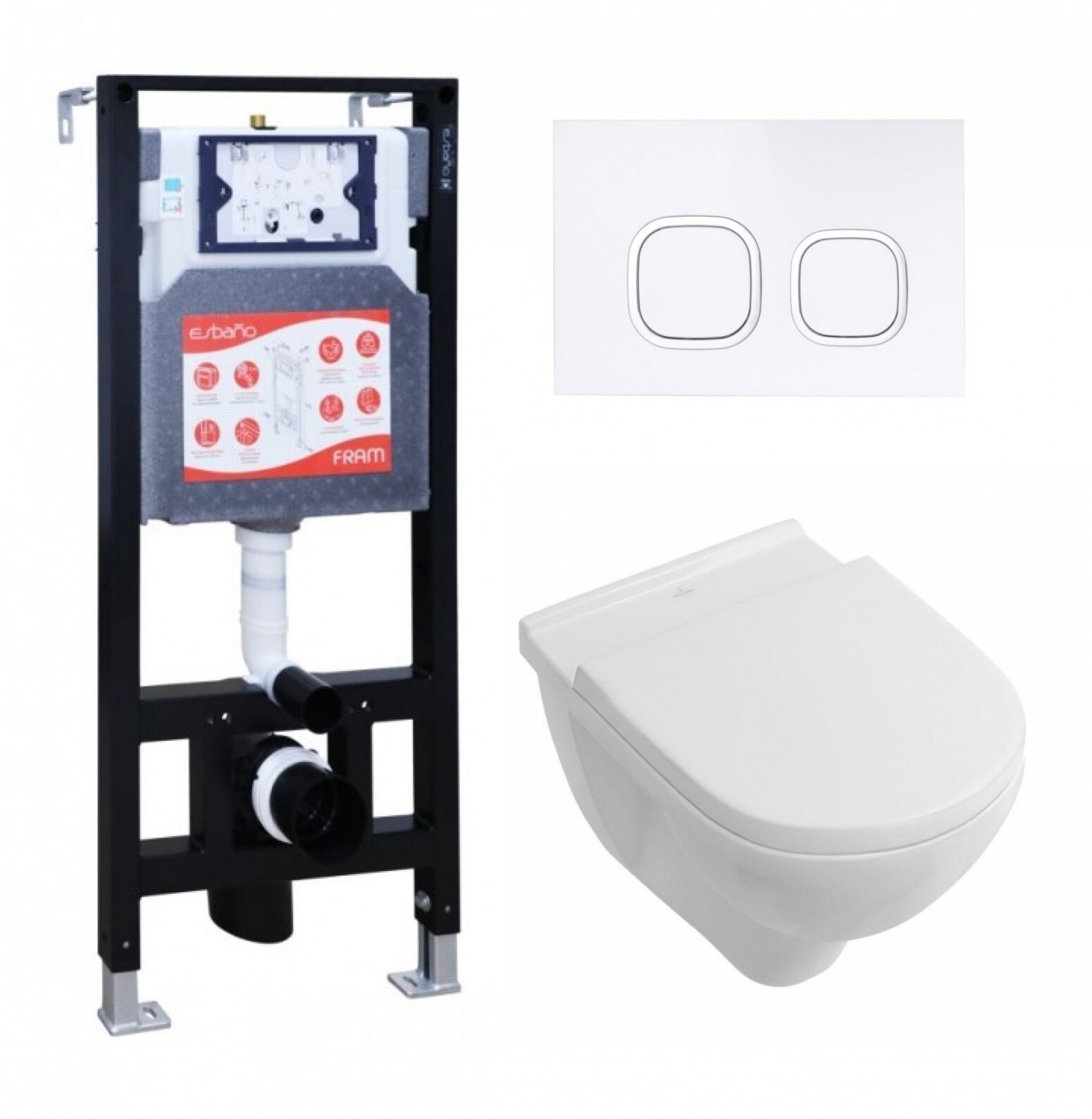 Купить Комплект 3 в 1 инсталляция ESBANO FRAM + Унитаз подвесной Villeroy & Boch O Novo Directflush + кнопка белая