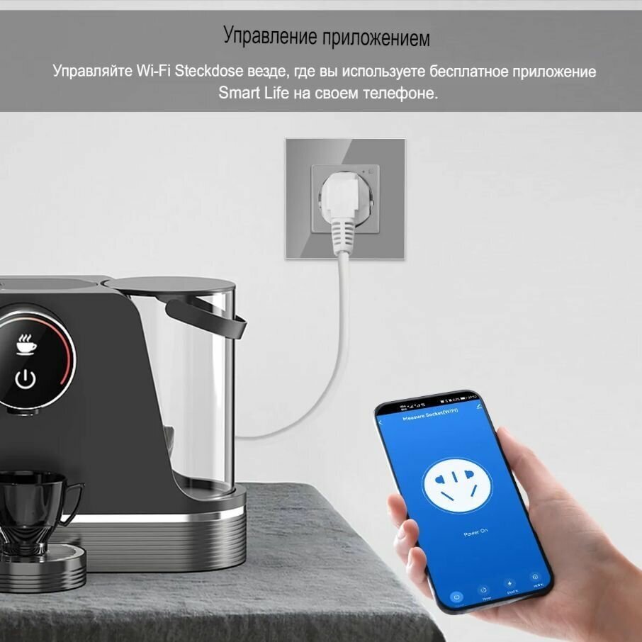 Купить Умная WiFi встроенная розетка Terem Techno с Алисой WiFi 16А Tuya / Smart Life / Digma с таймером стеклянная серая с голосовым управлением умным домом