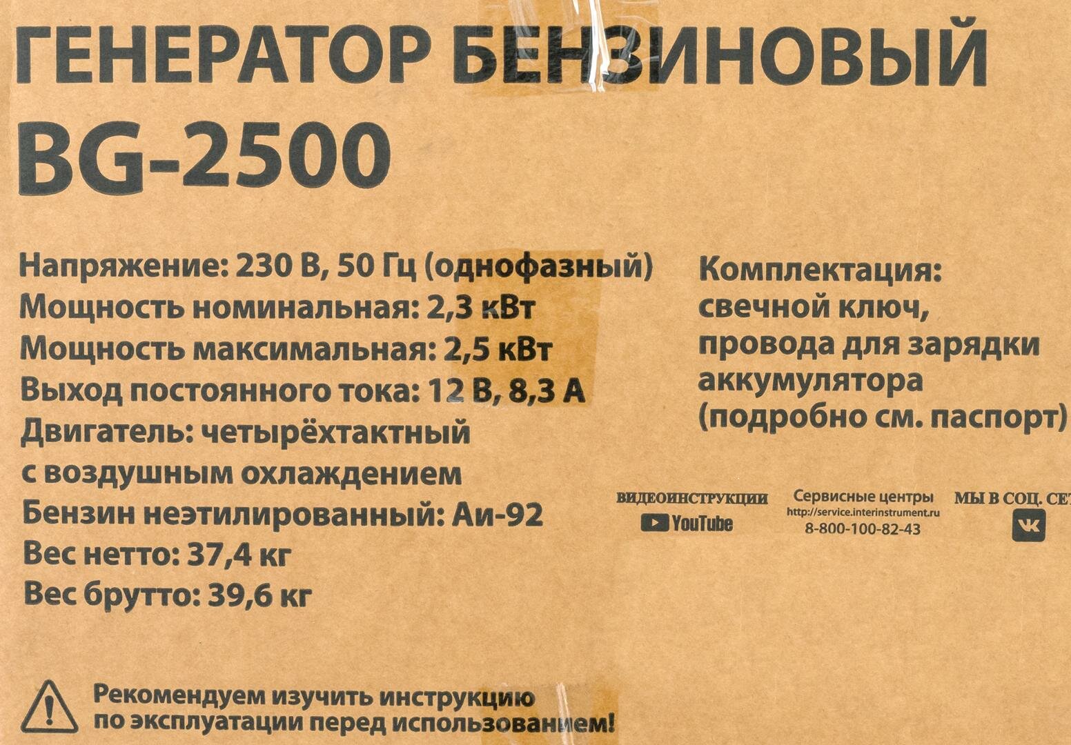 Генератор бензиновый BG-2500, 2.5 кВт интересное: