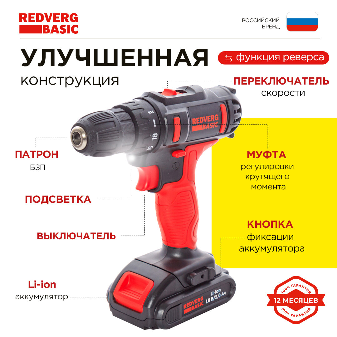 Шуруповерт аккумуляторный REDVERG Basic SD18LE/1-2 интересное: