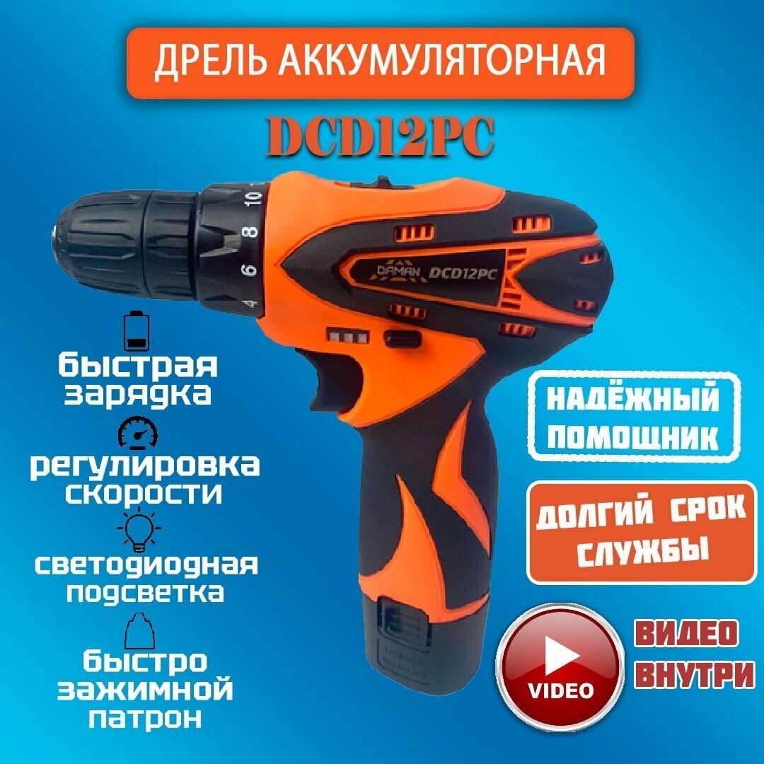 Купить Дрель аккумуляторная DCD12PC DAMAN (12В, 28 Нм, индикатор заряда, быстрозажимной патрон)