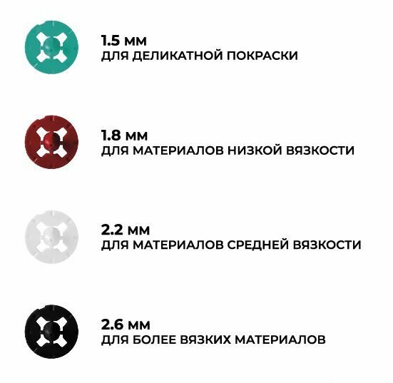 | Особенности | регулировка давления воздуха, регулировка диаметра сопла, регулировка подачи воздуха, регулировка подачи материала |