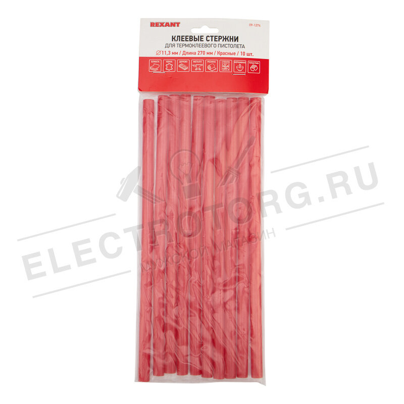 Стержни клеевые Ø11мм, 270мм, красные (10 шт/уп), хедер REXANT 1 упак арт. 09-1274 интересное: