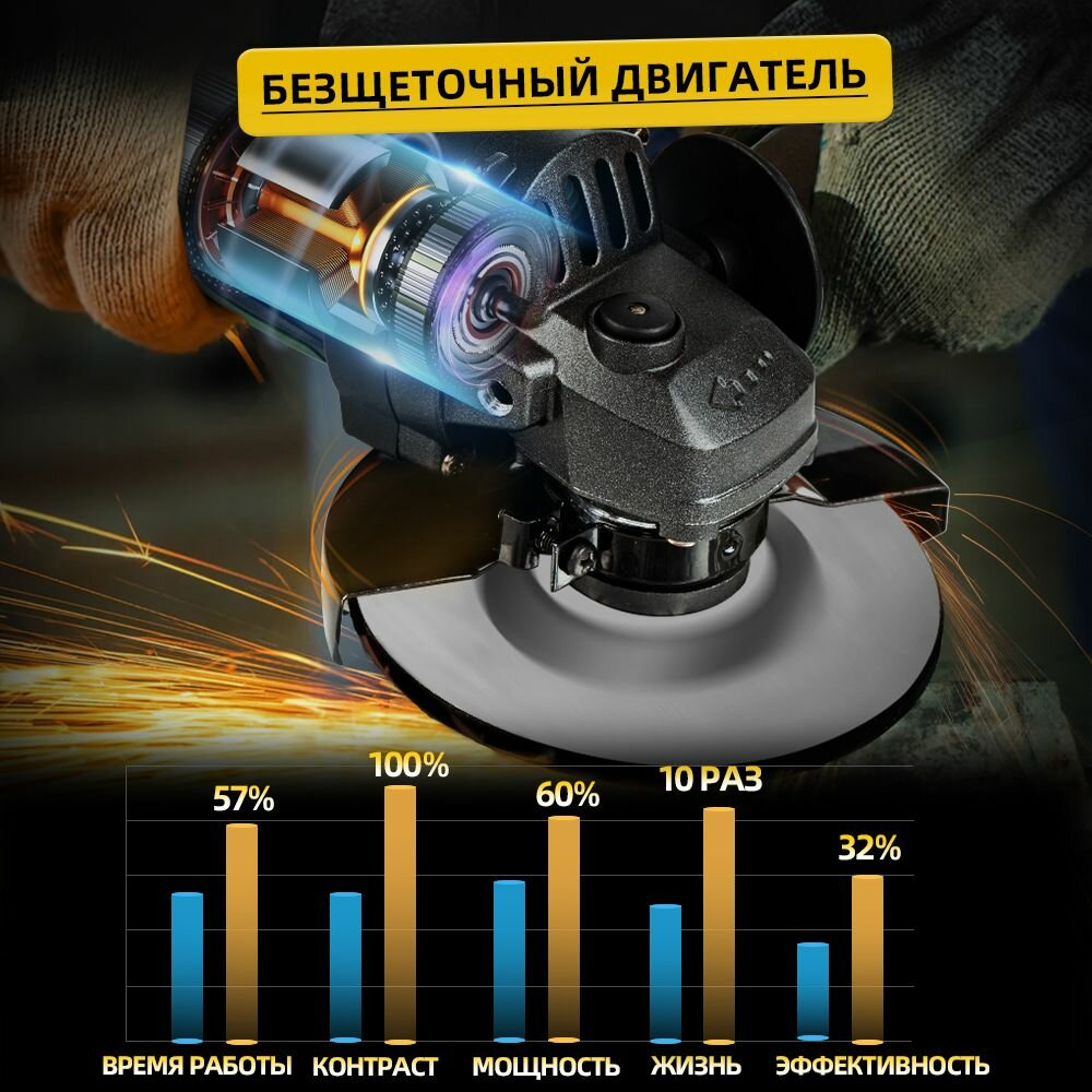 угловая мельница, PROSTORMER, PSBG00102MS2, 21 В, Безщёточная, 4000MAH литий - ионная батарея*2, Трехступенчатая коробка передач , кейс интересное: