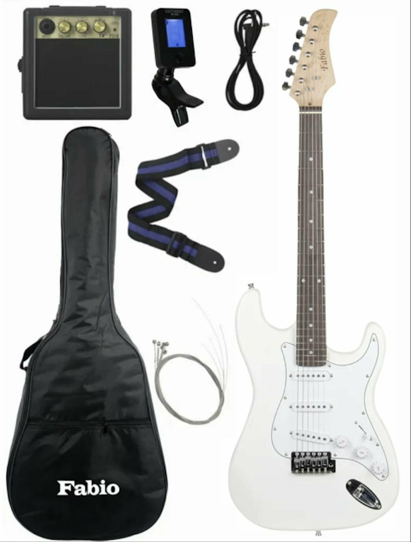 Купить Комплект Fabio ST100 WH (электрогитара S/S/S, комбоусилитель MG-10, тюнер, чехол, ремень, струны)